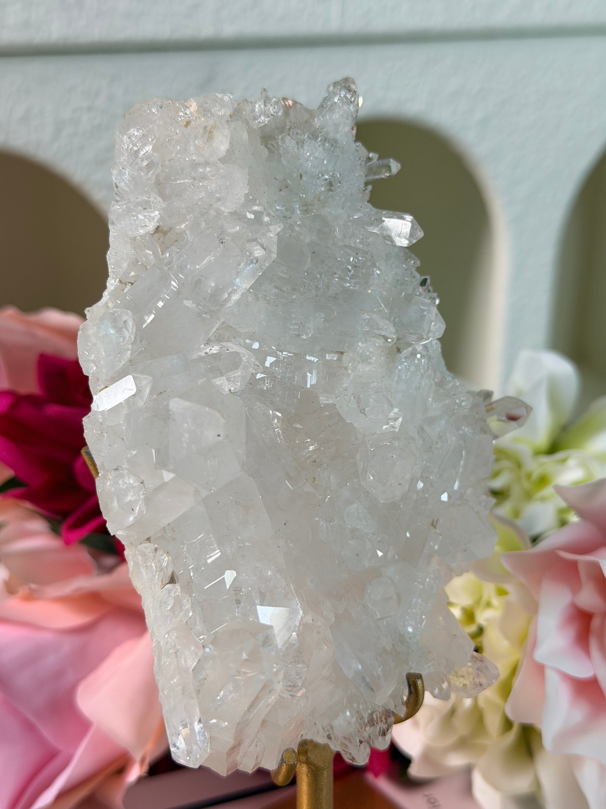 Bergkristal bevordert focus, intuïtie en spirituele groei, en wordt vaak gebruikt voor meditatie en healing.