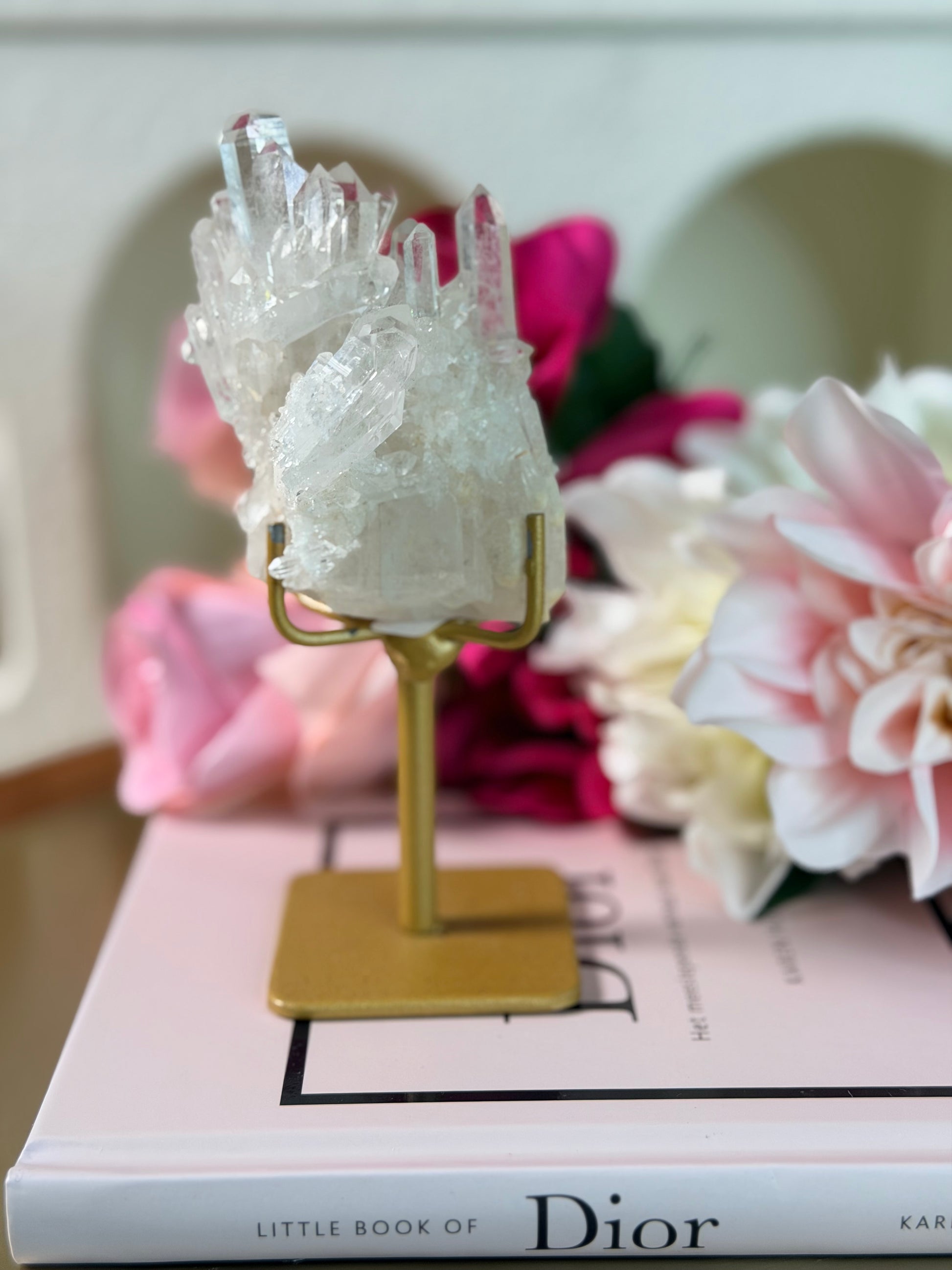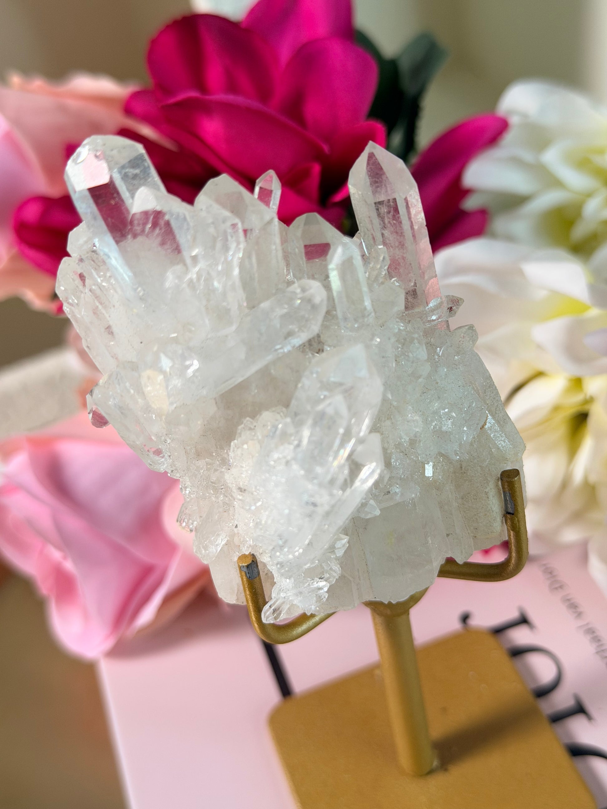 Bergkristal bevordert focus, intuïtie en spirituele groei, en wordt vaak gebruikt voor meditatie en healing.