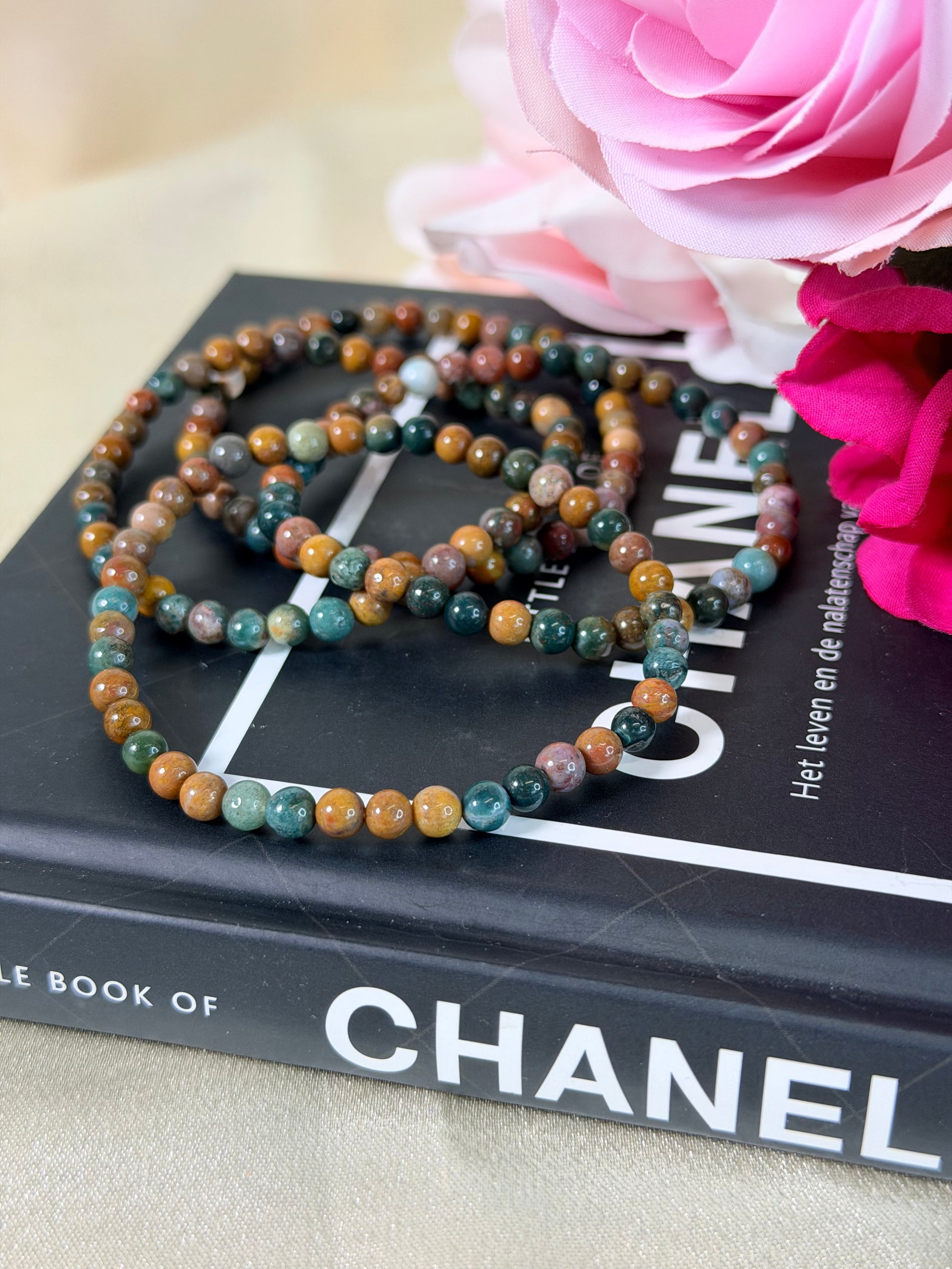 Oceaan Jaspis is een kleurrijke edelsteen die rust, positiviteit en emotionele heling brengt. Deze steen bevordert zelfliefde, helpt stress los te laten en stimuleert een gevoel van dankbaarheid. Perfect voor innerlijke balans en nieuwe energie.