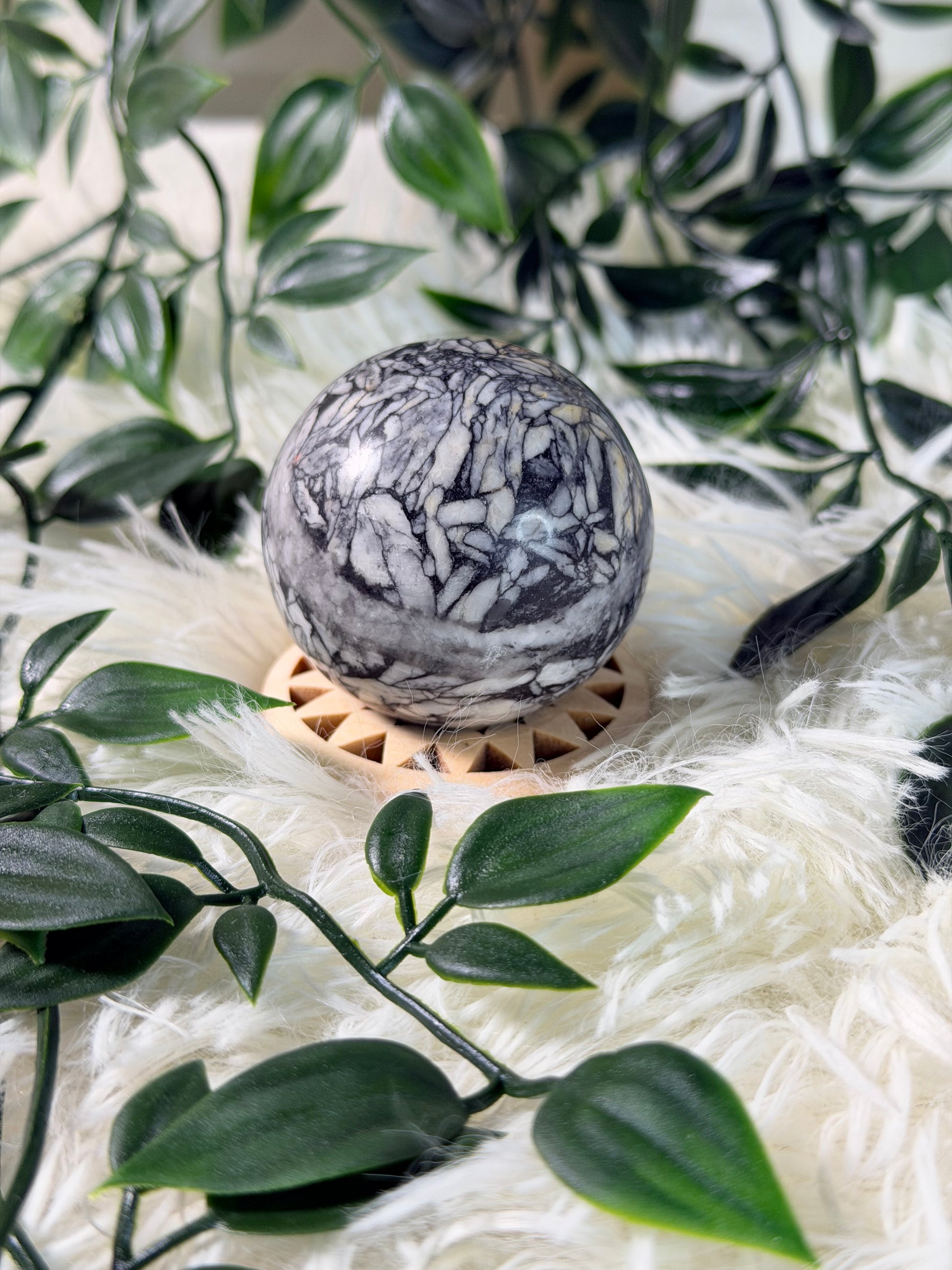 Pinoliet (ook wel Pinolite genoemd) is een zeldzame combinatie van magnesiet en dolomiet, herkenbaar aan het marmerachtige zwart-witte patroon. Deze steen straalt rust uit en helpt om innerlijke vrede en zelfacceptatie te versterken.
