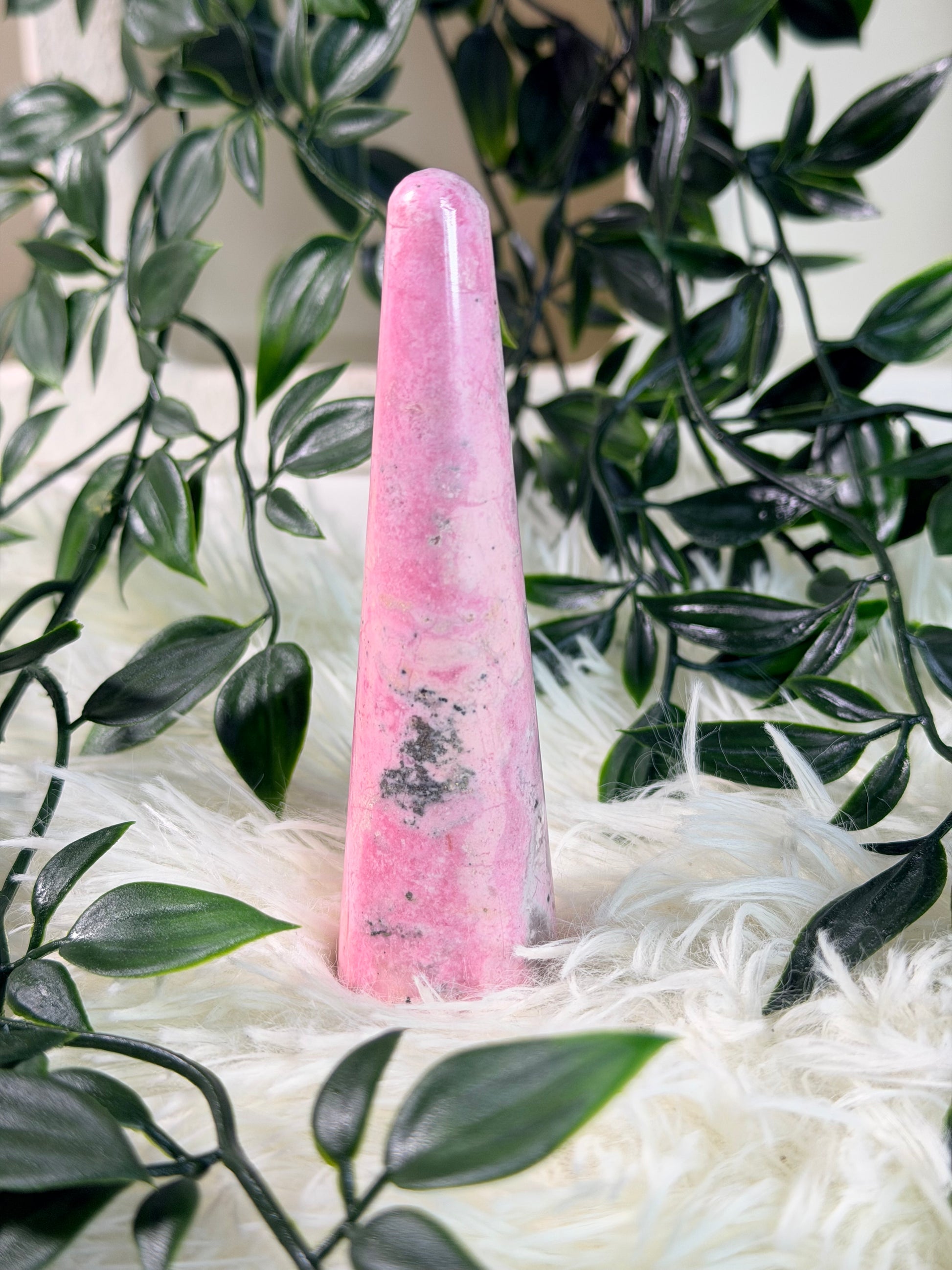 Peruaanse Rhodoniet herken je aan haar warme roze tinten met donkere aders. Deze steen staat bekend om emotionele balans, zelfliefde en veerkracht.