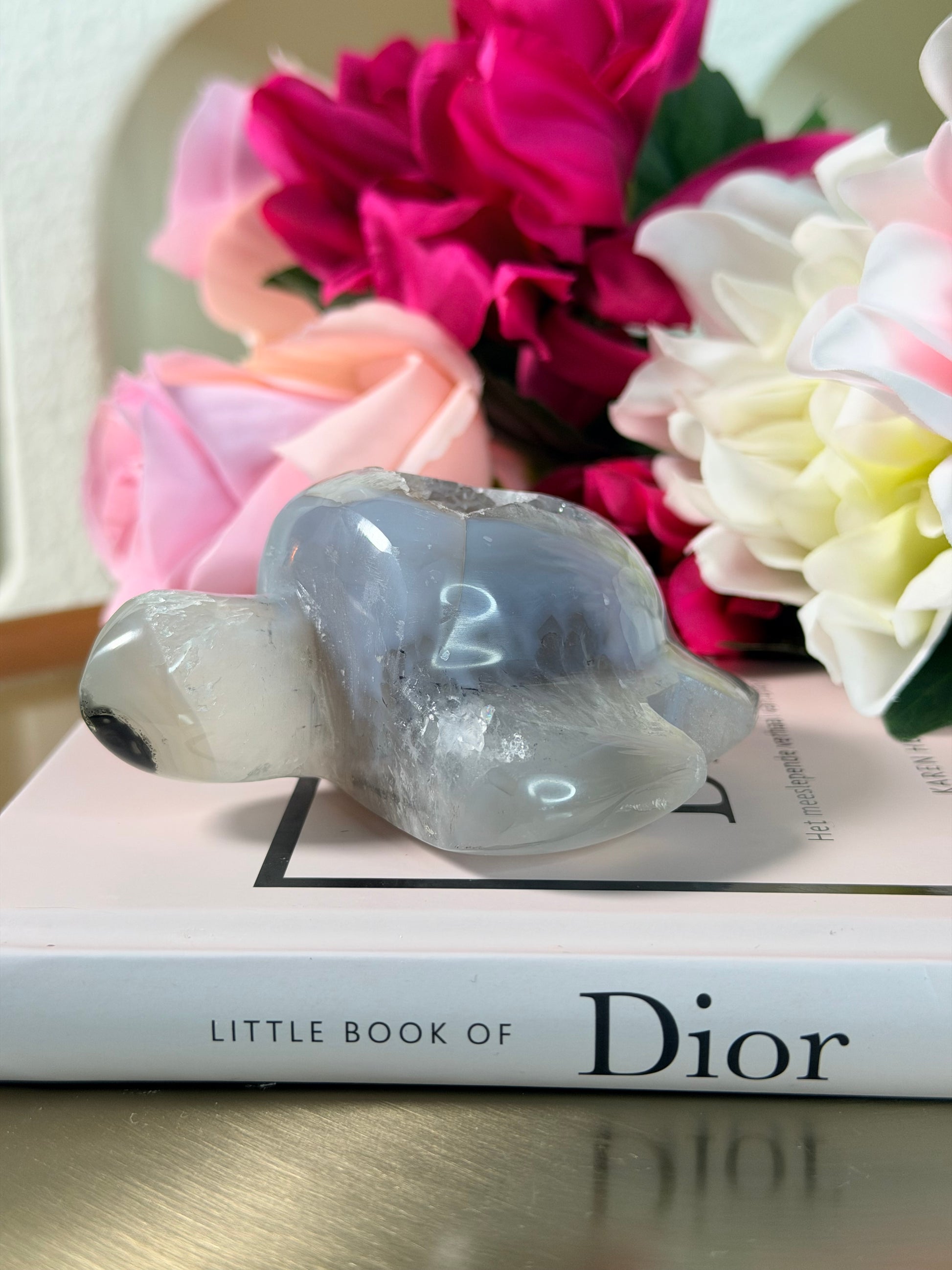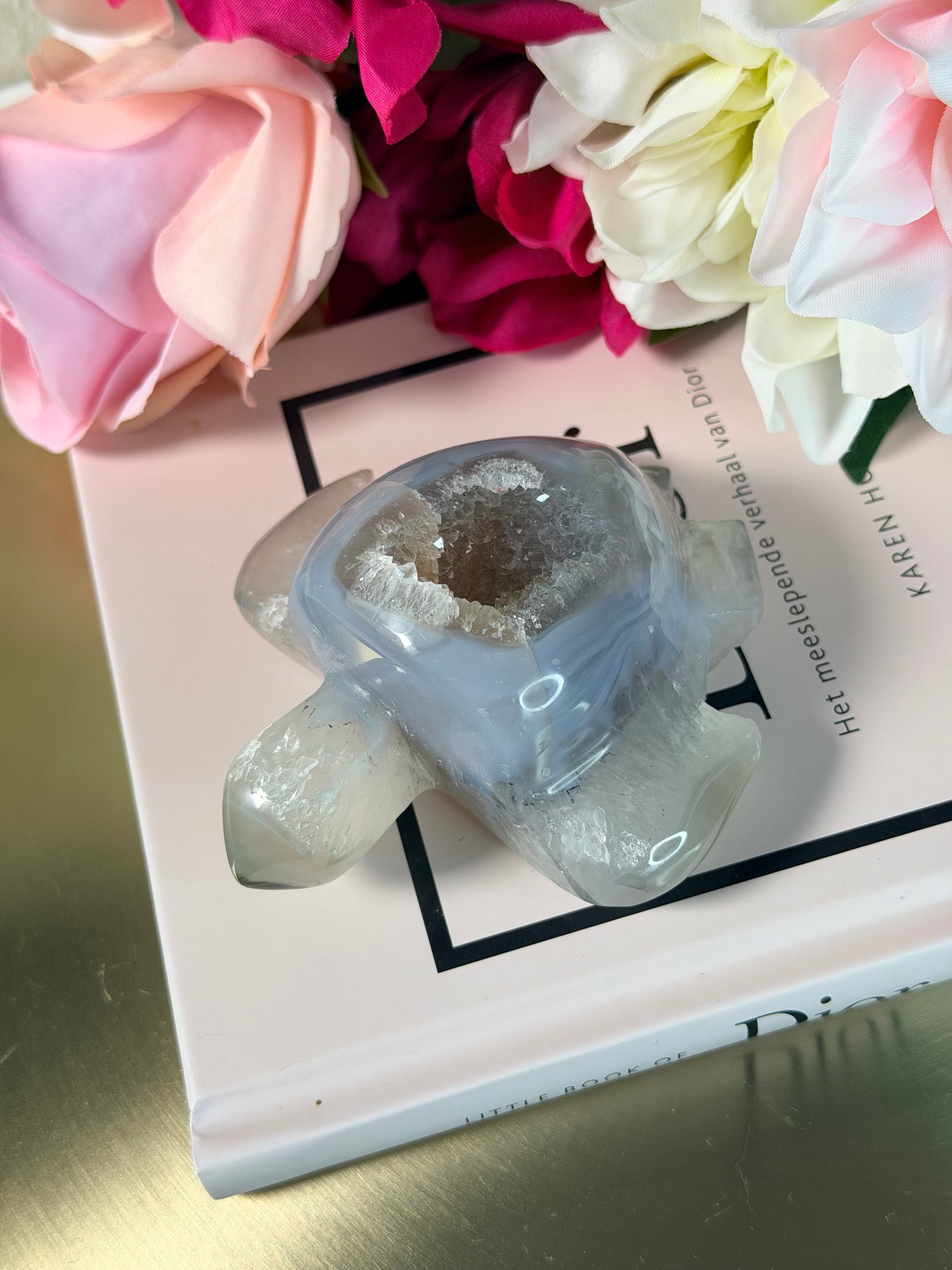De schildpad staat symbool voor rust, stabiliteit en innerlijke kracht. Ze herinnert je eraan om je eigen tempo te volgen en met vertrouwen je pad te bewandelen.