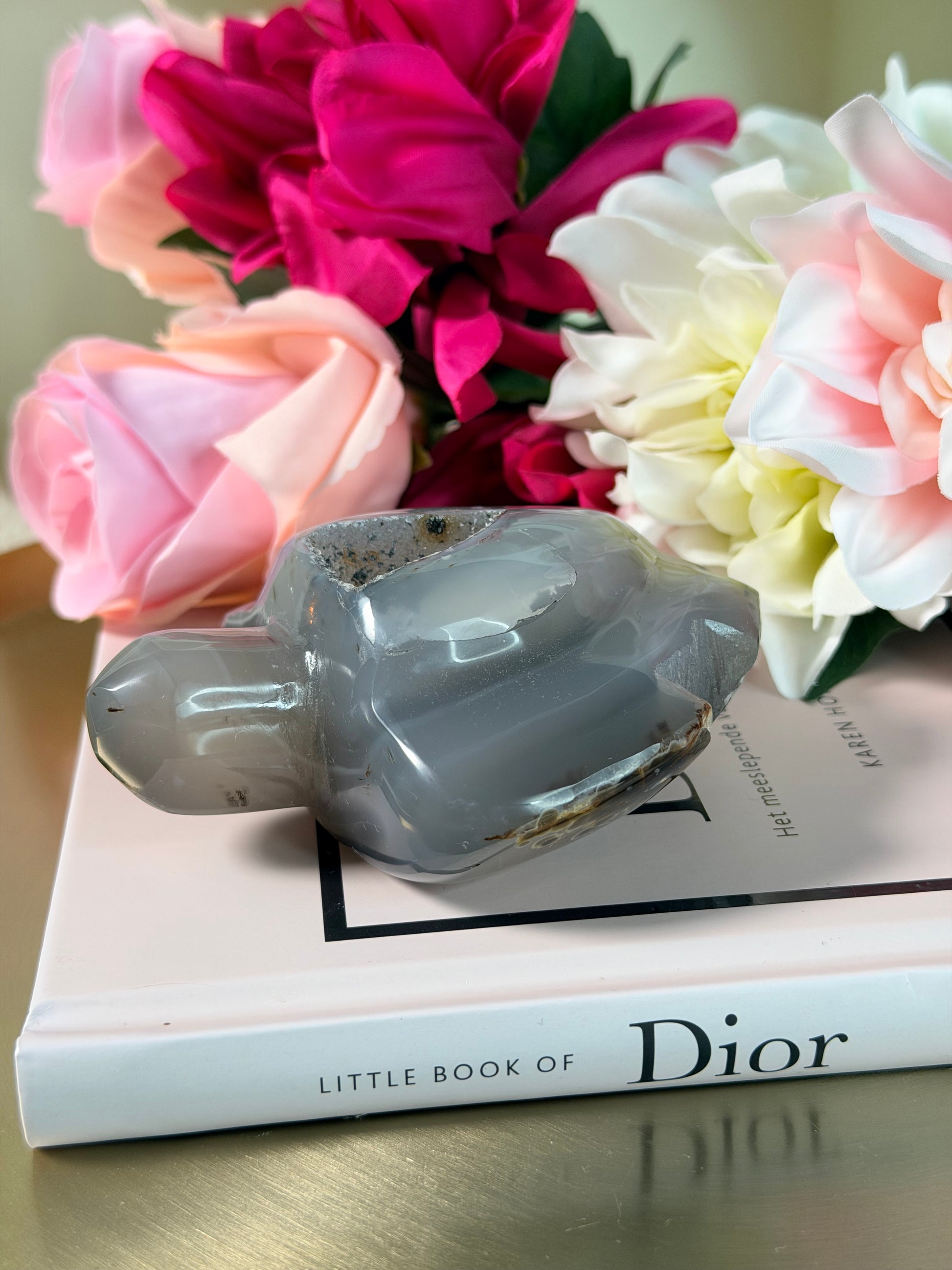 De schildpad staat symbool voor rust, stabiliteit en innerlijke kracht. Ze herinnert je eraan om je eigen tempo te volgen en met vertrouwen je pad te bewandelen.