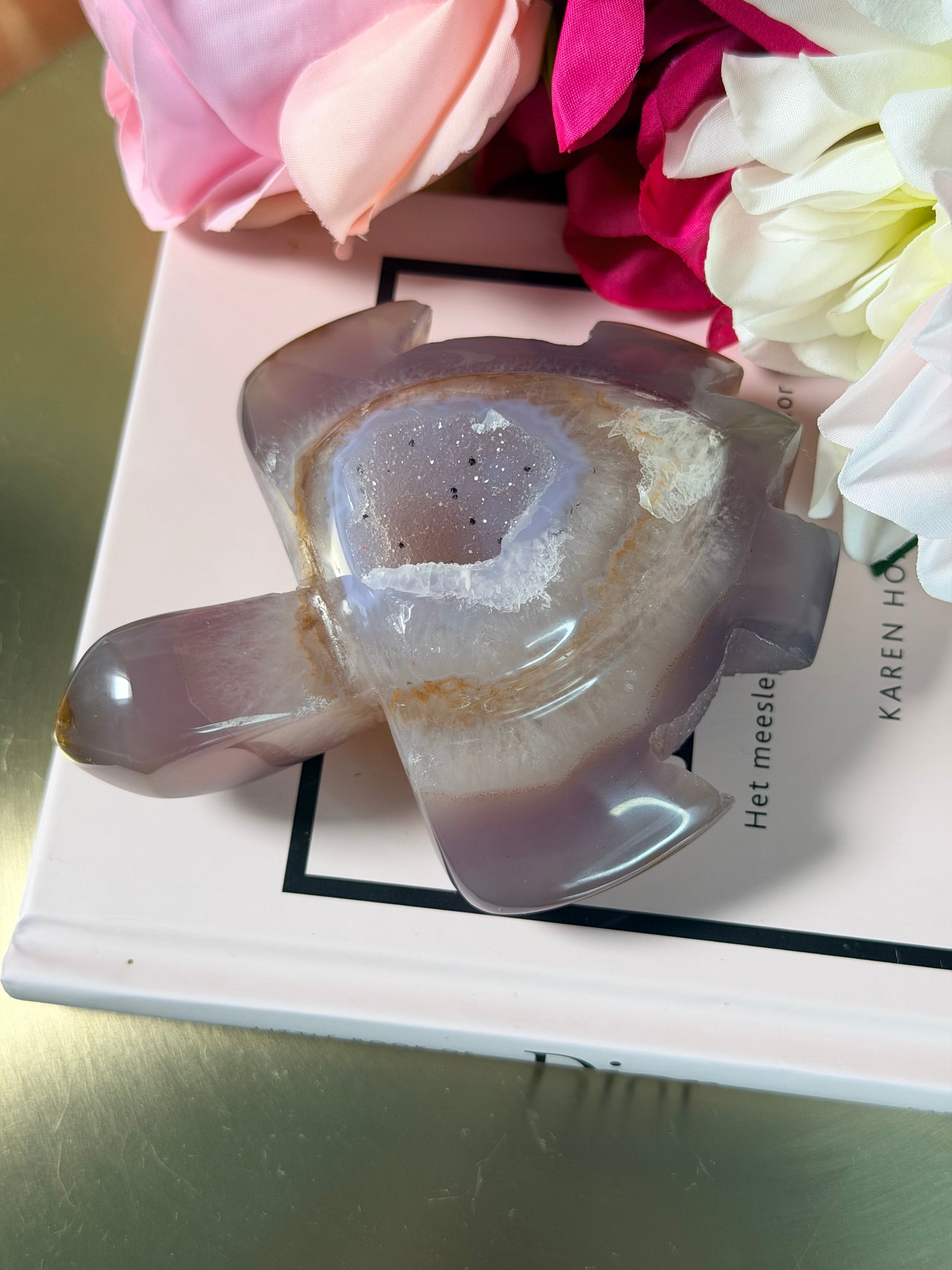 De schildpad staat symbool voor rust, stabiliteit en innerlijke kracht. Ze herinnert je eraan om je eigen tempo te volgen en met vertrouwen je pad te bewandelen.