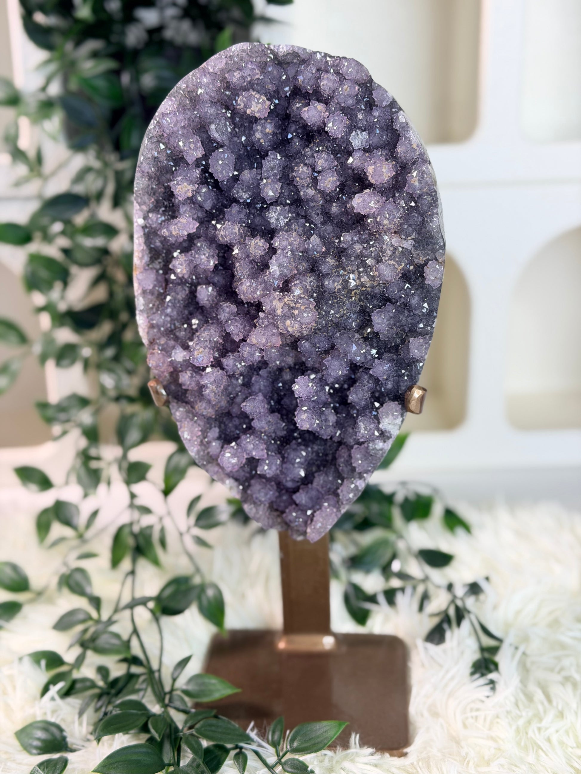 Amethist is een paarse edelsteen die helpt om innerlijke rust, balans en focus te versterken. Ze staat bekend om haar zuiverende werking en wordt vaak gebruikt om stress en negatieve energie los te laten.