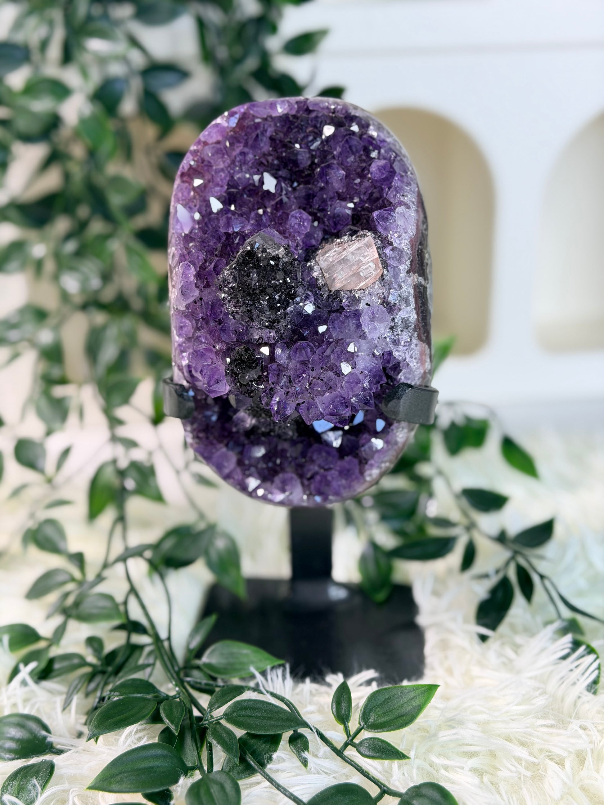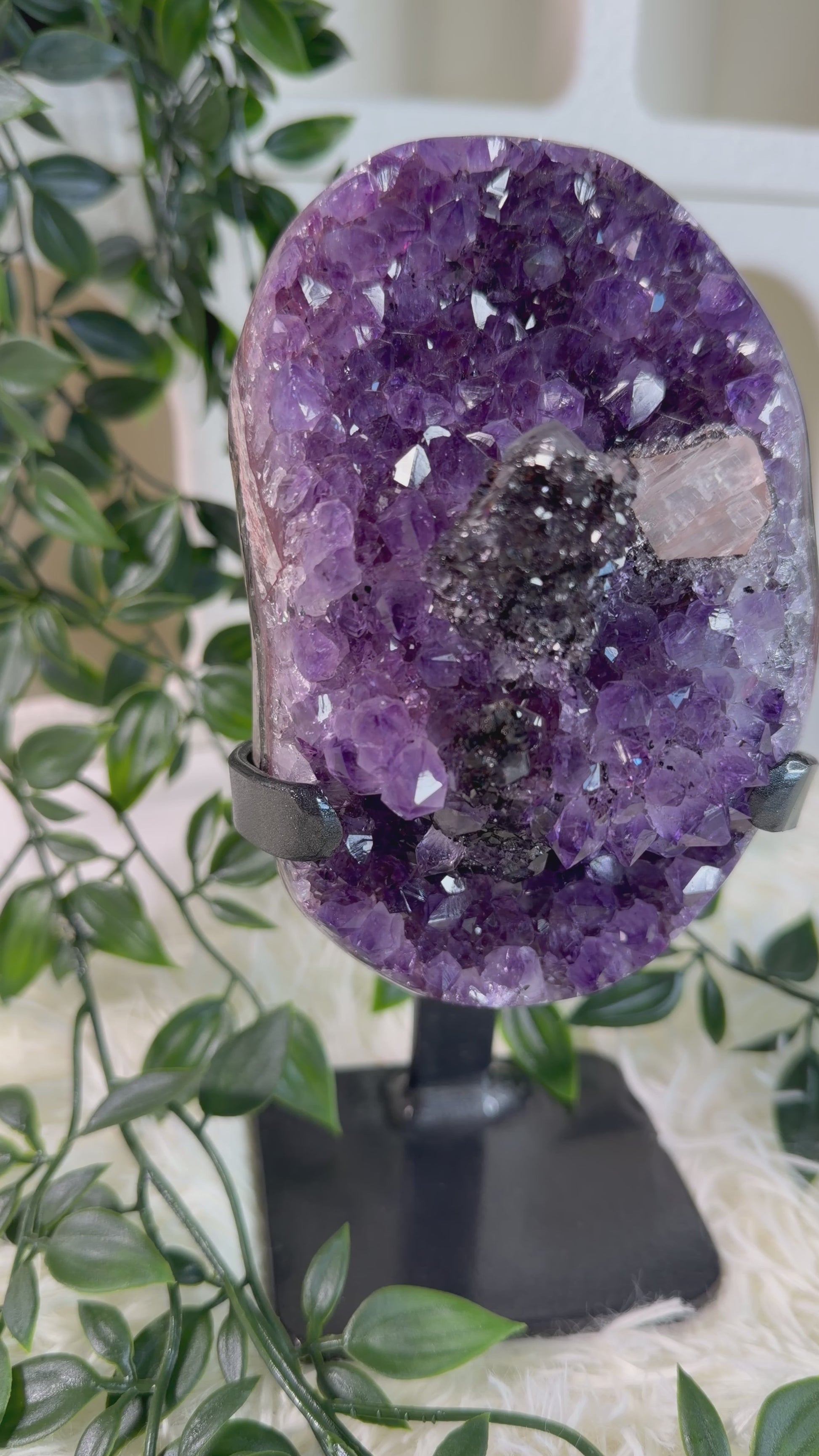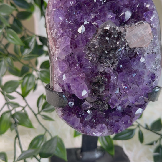 Deze combinatie van Amethist, Calciet en Hematiet brengt een unieke mix van rust, positiviteit en aarding.