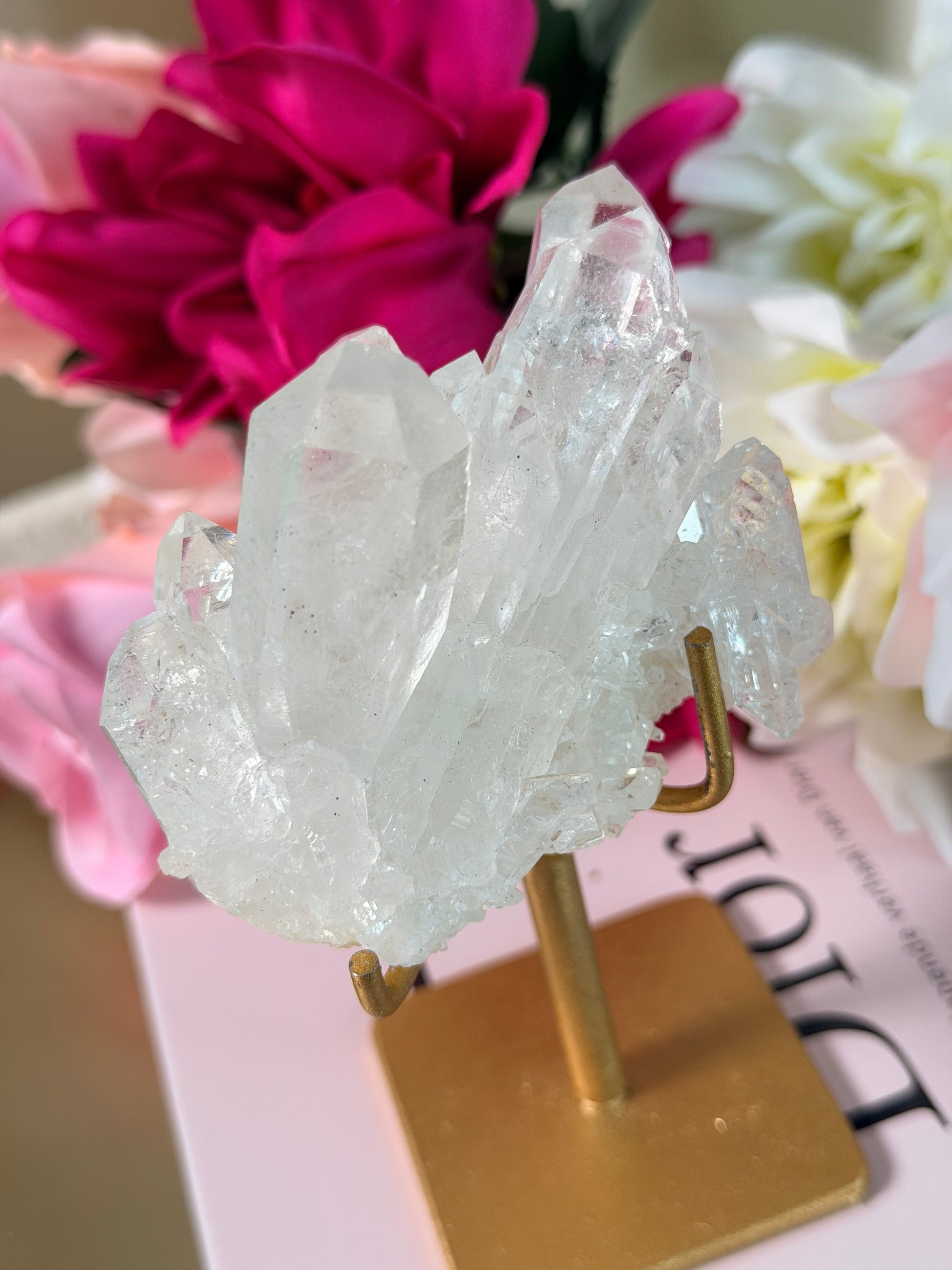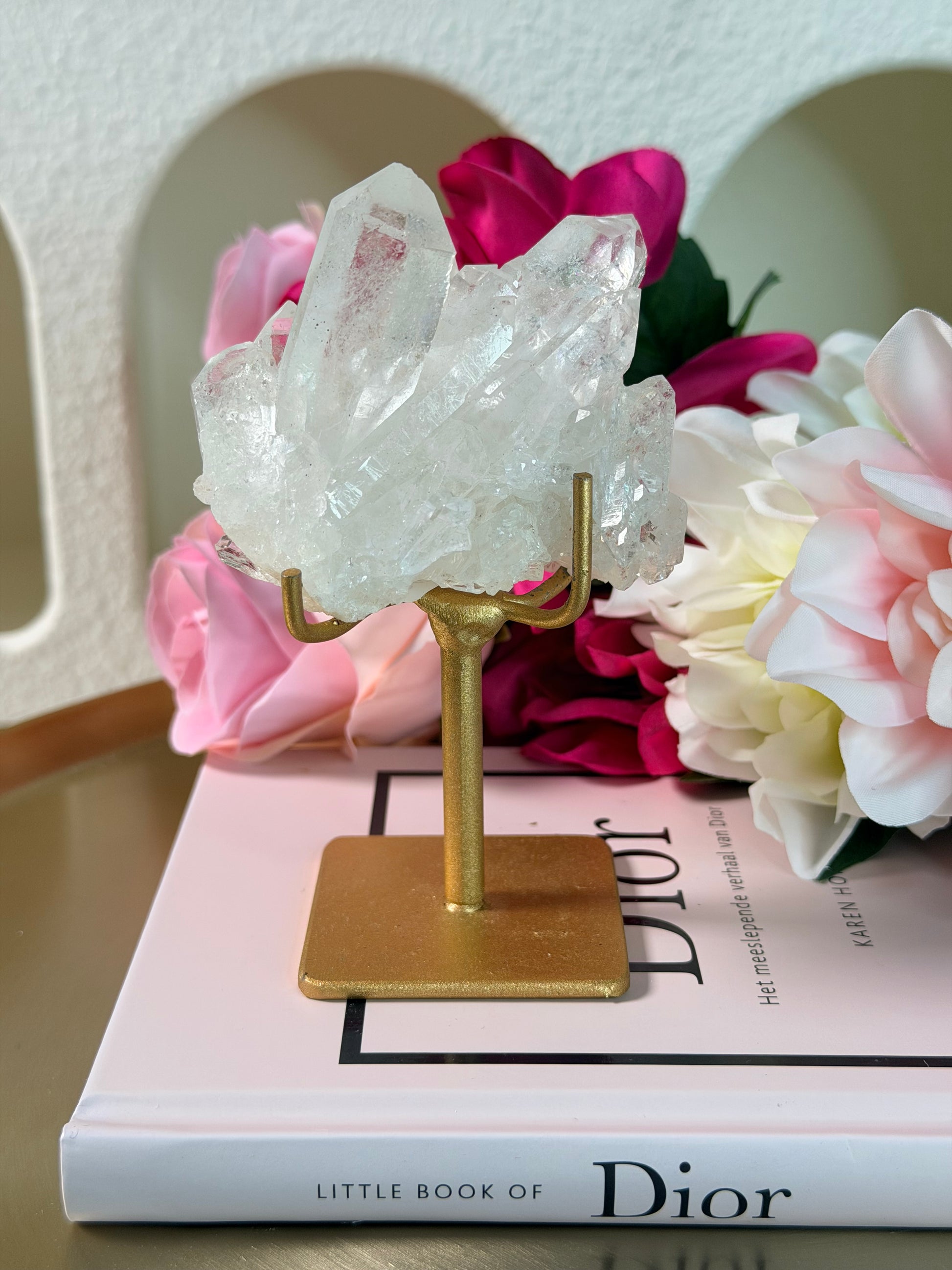 Bergkristal bevordert focus, intuïtie en spirituele groei, en wordt vaak gebruikt voor meditatie en healing.