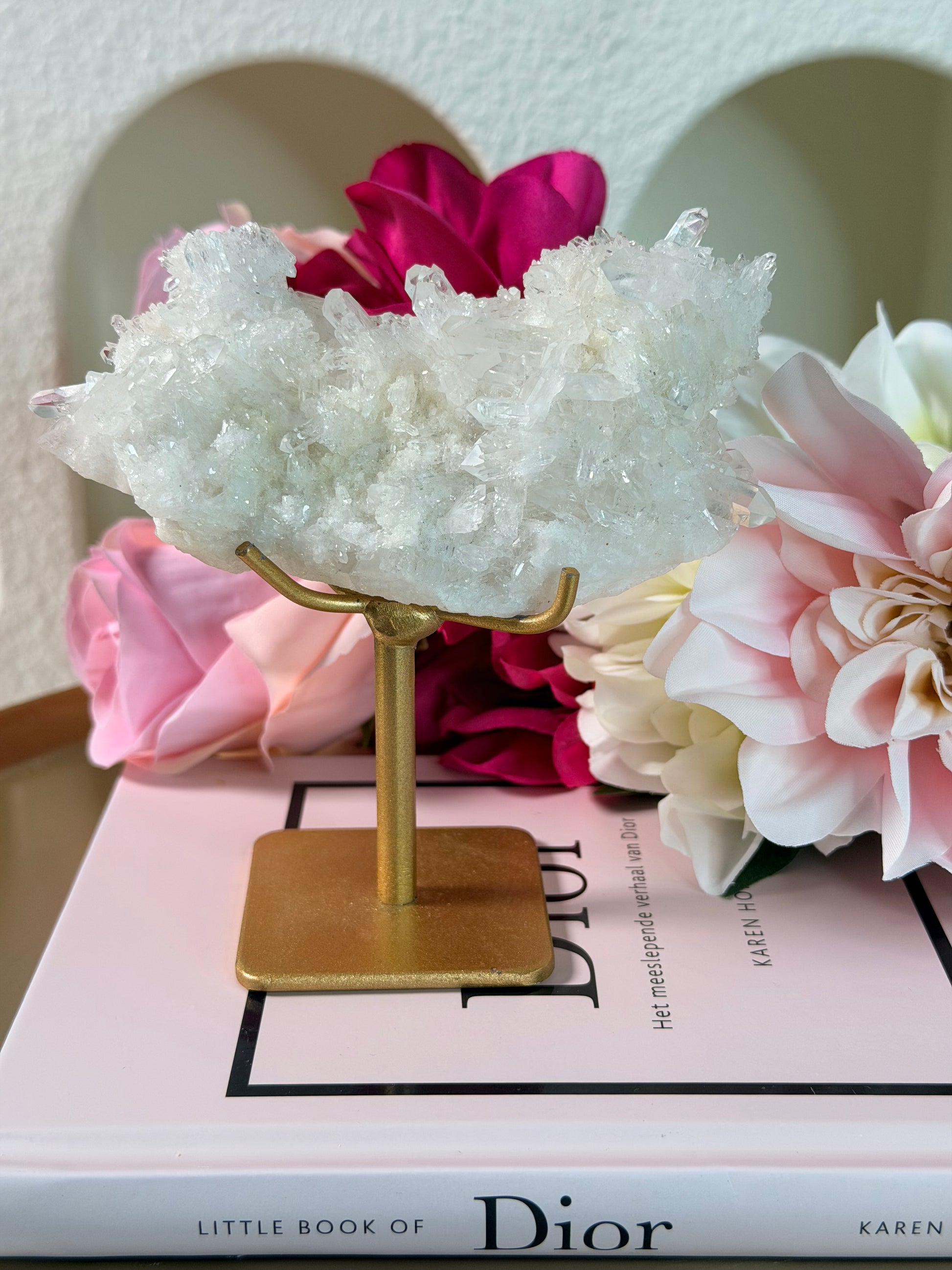 Bergkristal bevordert focus, intuïtie en spirituele groei, en wordt vaak gebruikt voor meditatie en healing.