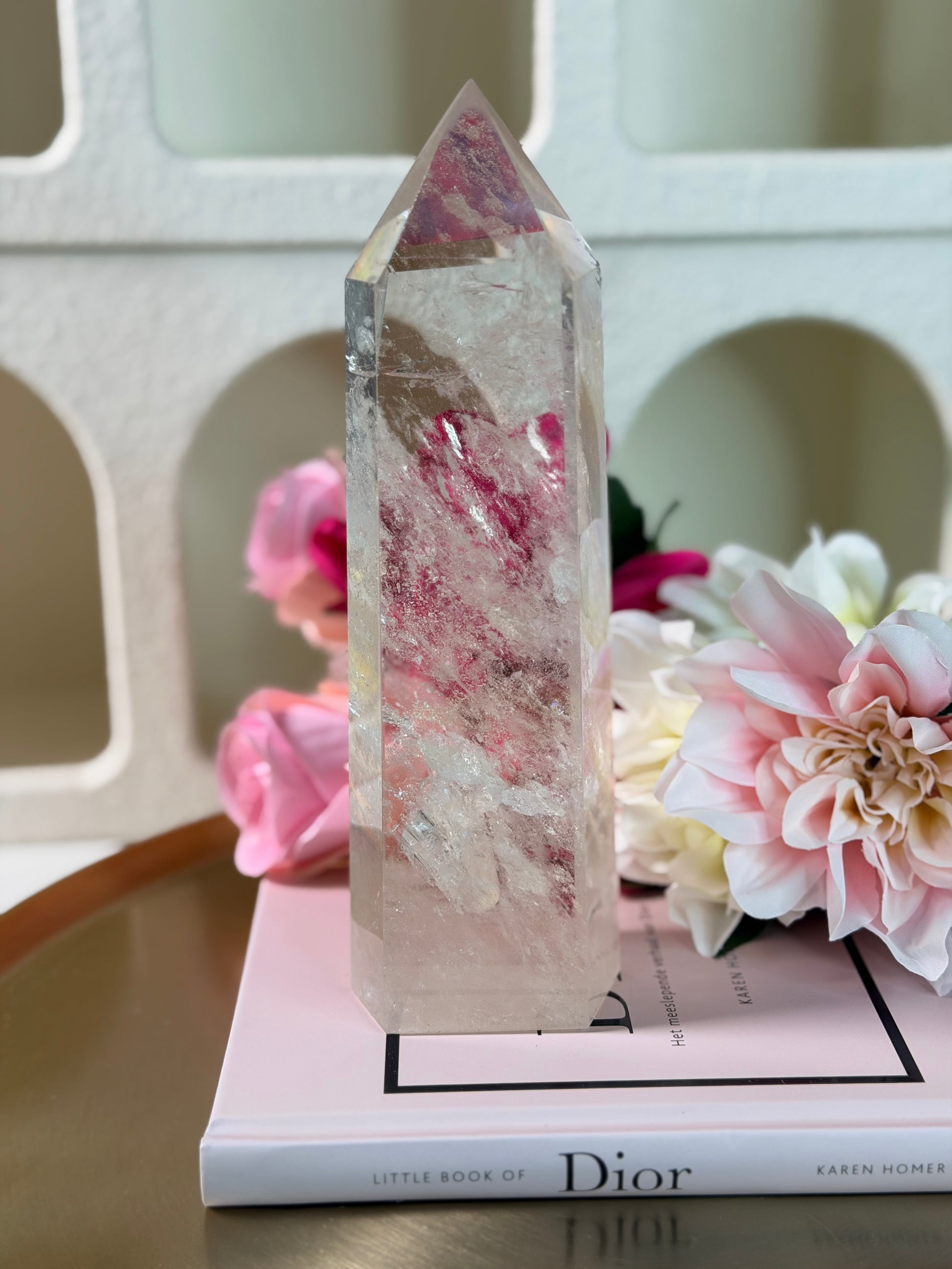 Bergkristal bevordert focus, intuïtie en spirituele groei, en wordt vaak gebruikt voor meditatie en healing.