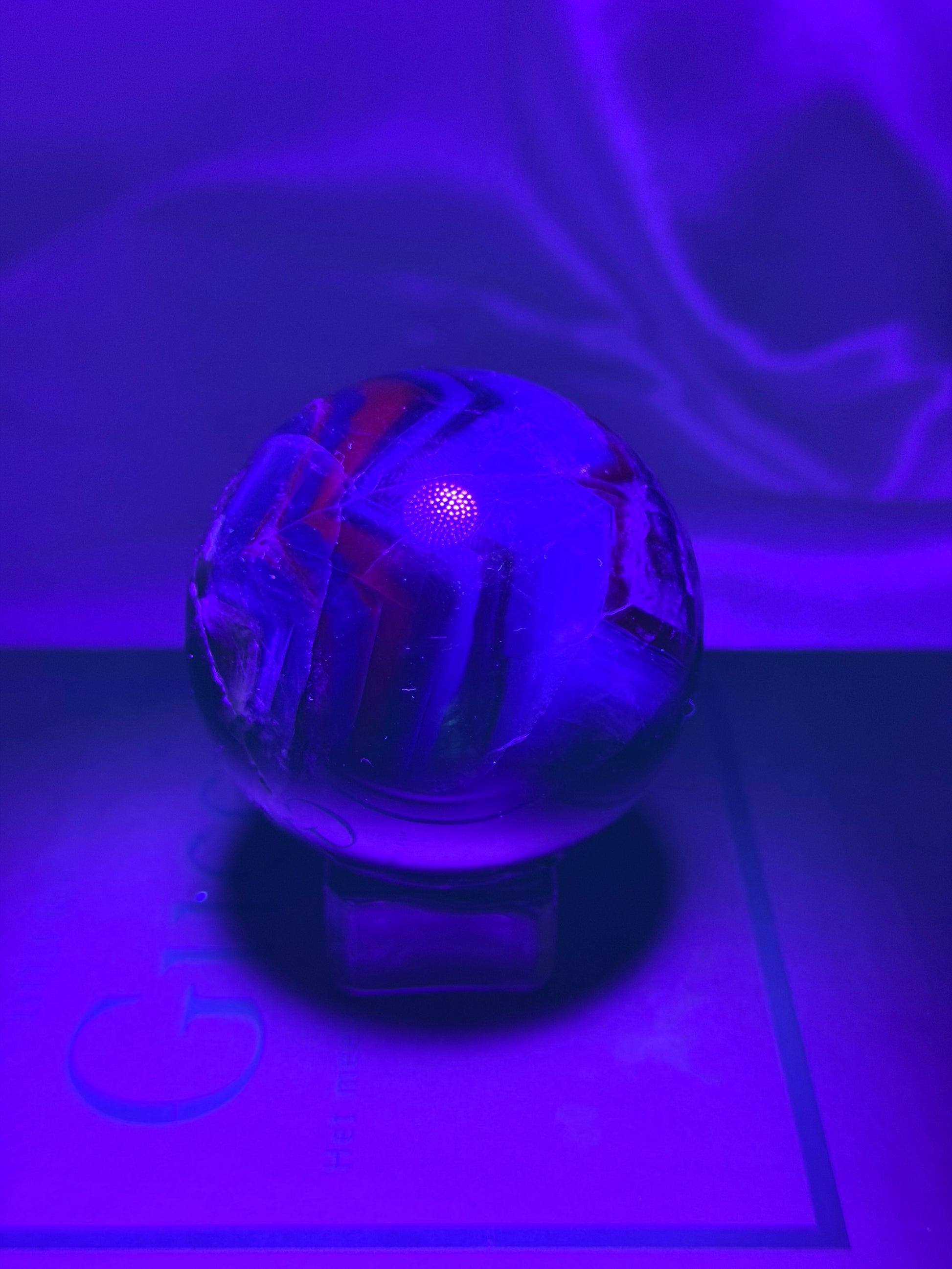 De UV-luminescentie in Black Rose Fluoriet ontstaat door sporen van bepaalde elementen in het mineraal, zoals europium, yttrium of cerium. Deze zeldzame aardmetalen reageren op ultraviolet licht (UV-licht) door energie af te geven in de vorm van zichtbaar licht — meestal blauw, paars of roze gloed.