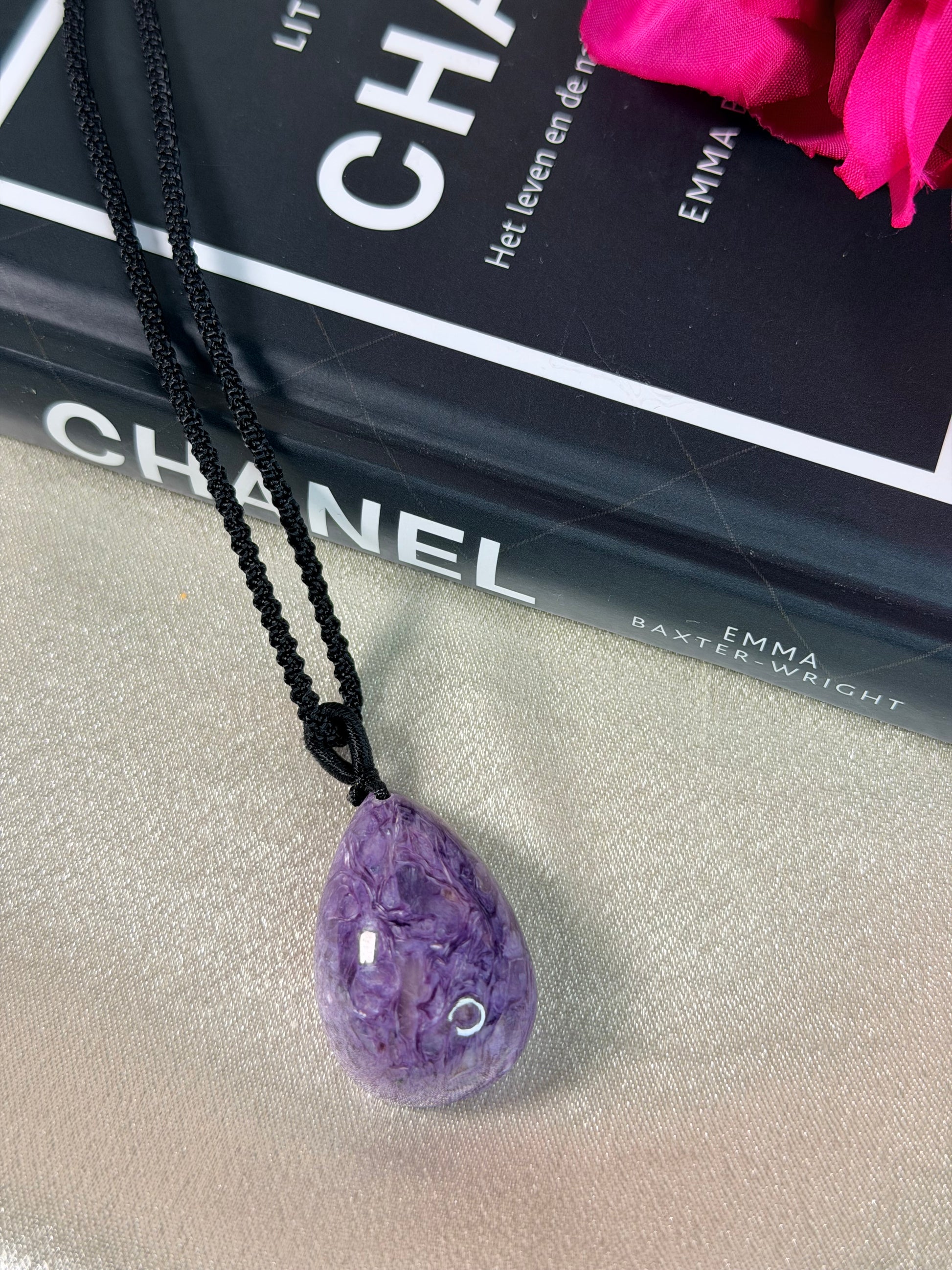 Charoïet opent het derde oog en kruinchakra, versterkt intuïtie en verbindt je met hogere energieën. Een krachtige steen voor wie wil groeien, helen en transformeren vanuit liefde en vertrouwen.