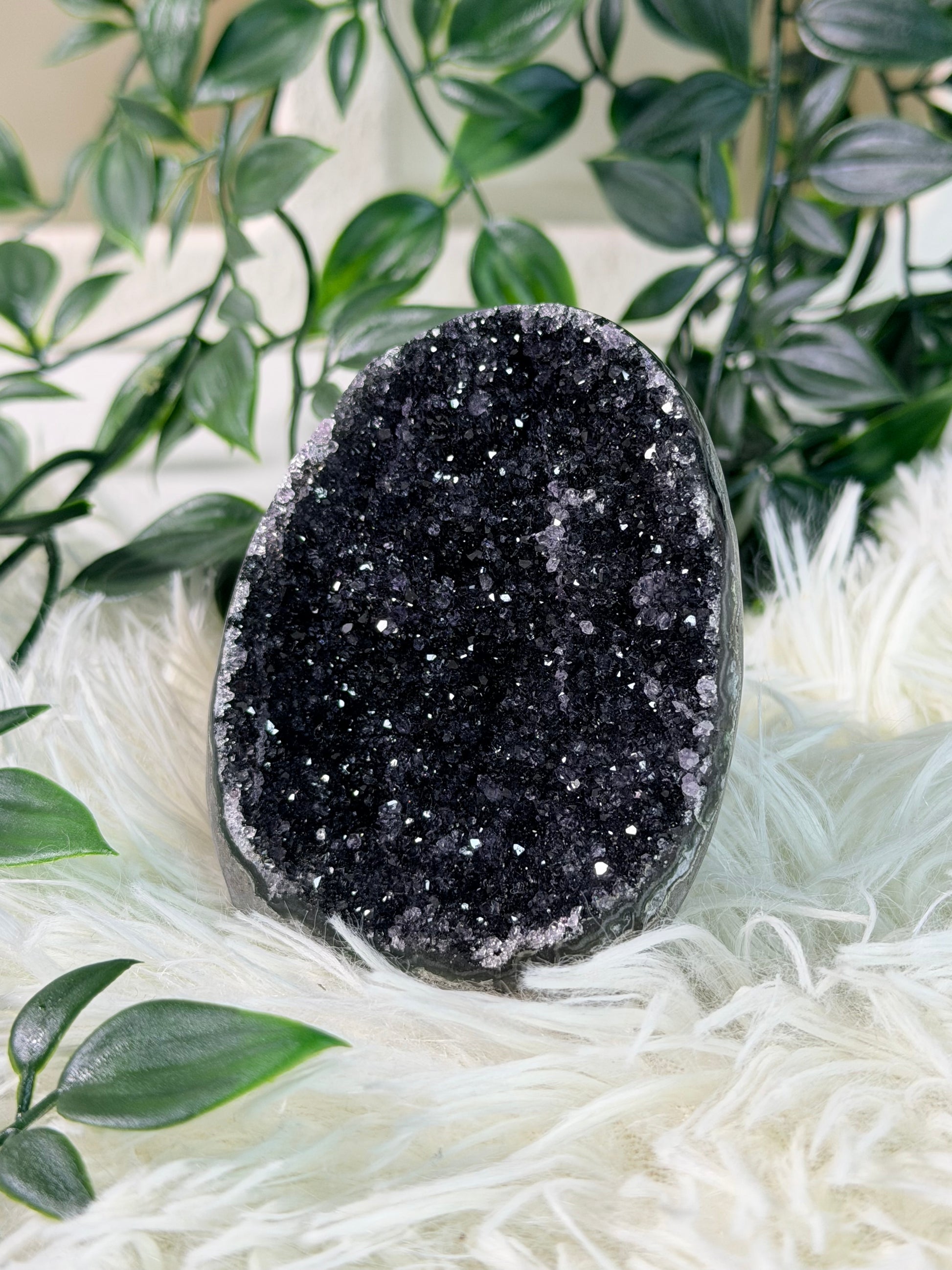 Zwarte Galaxy Amethist helpt spanning los te laten, bevordert helder denken en ondersteunt een diepe, herstellende rust.