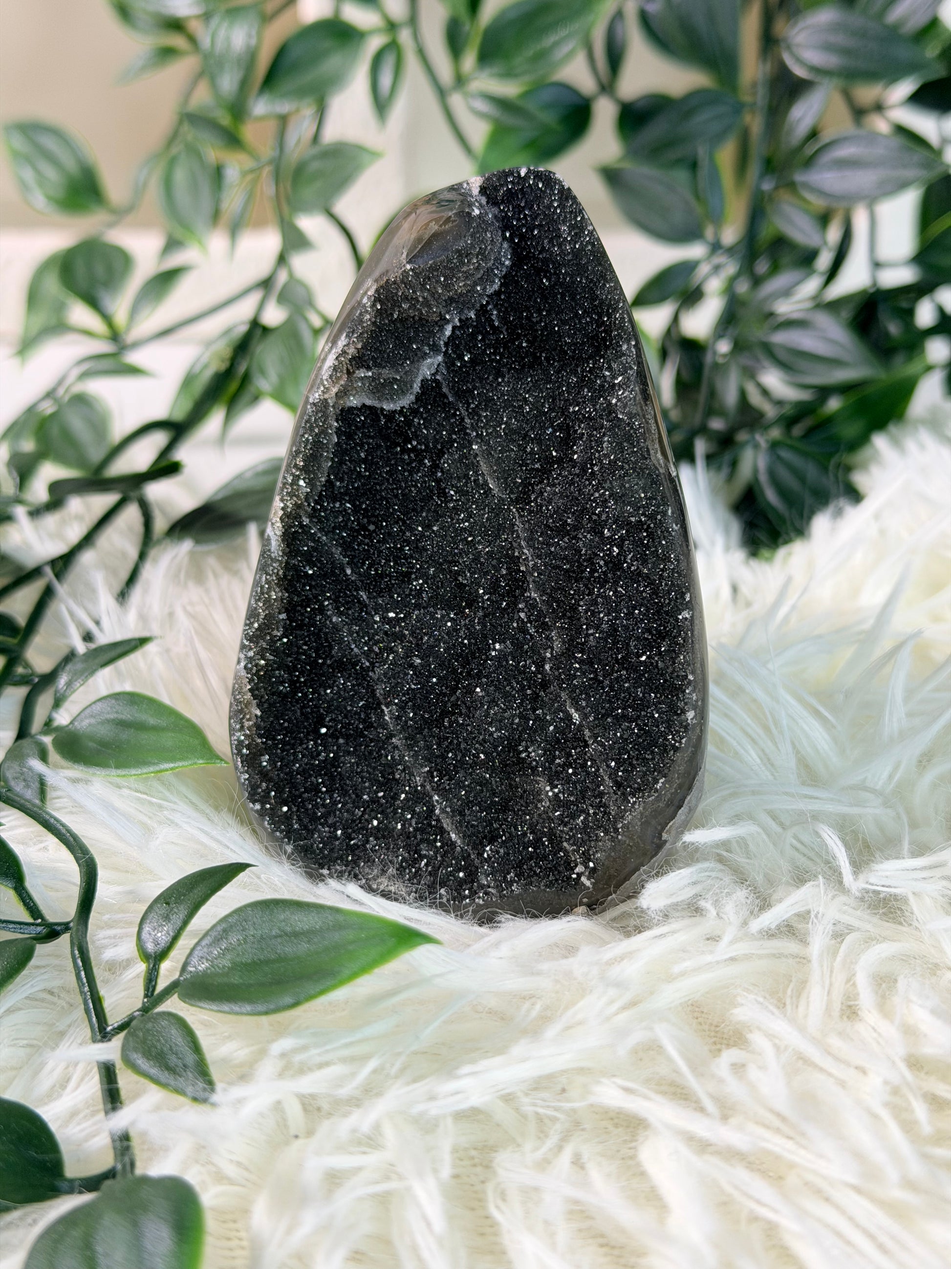 Zwarte Galaxy Amethist helpt spanning los te laten, bevordert helder denken en ondersteunt een diepe, herstellende rust.