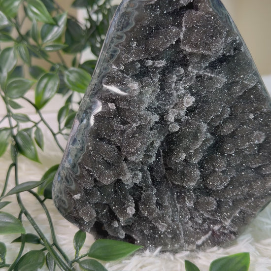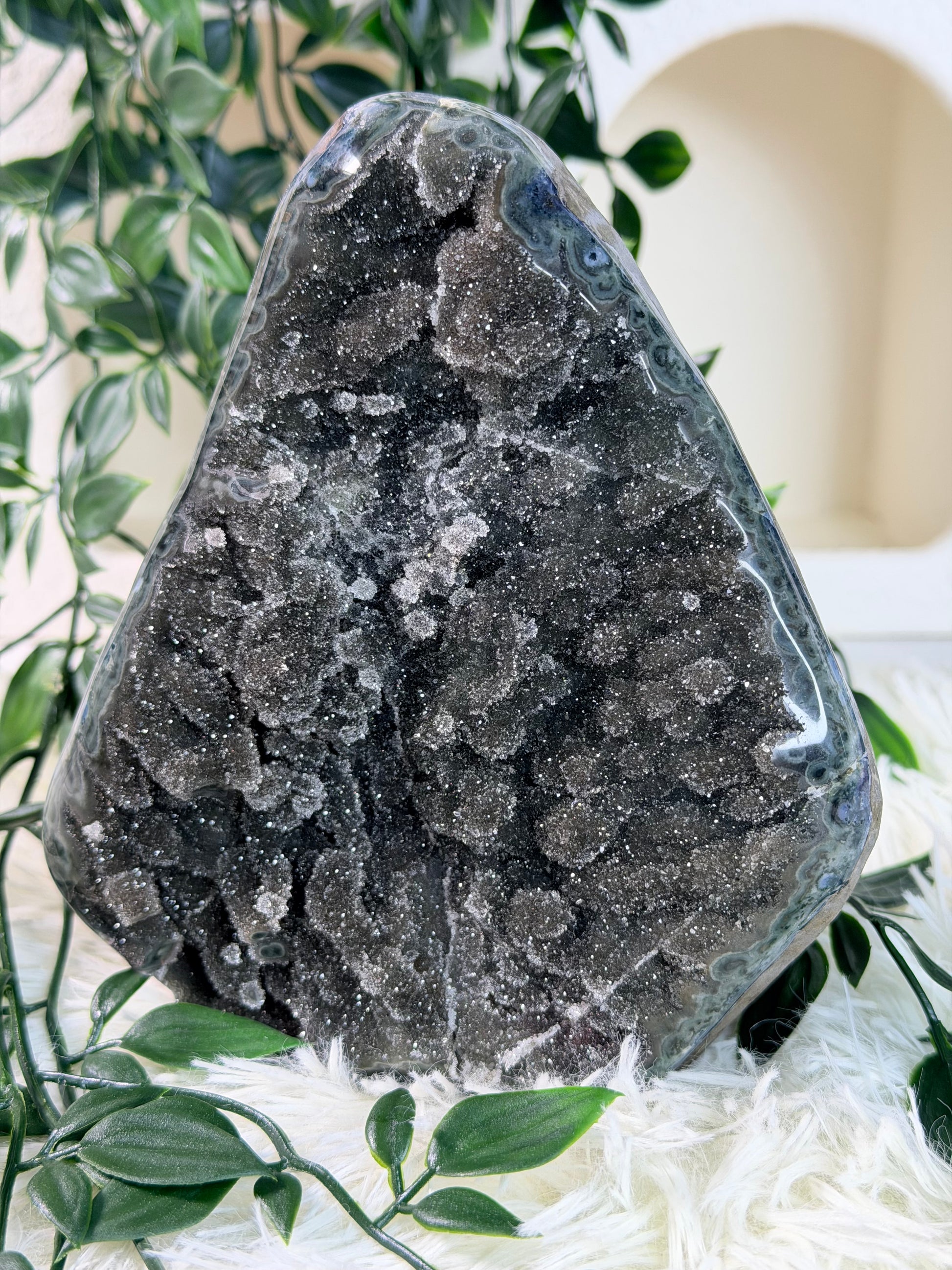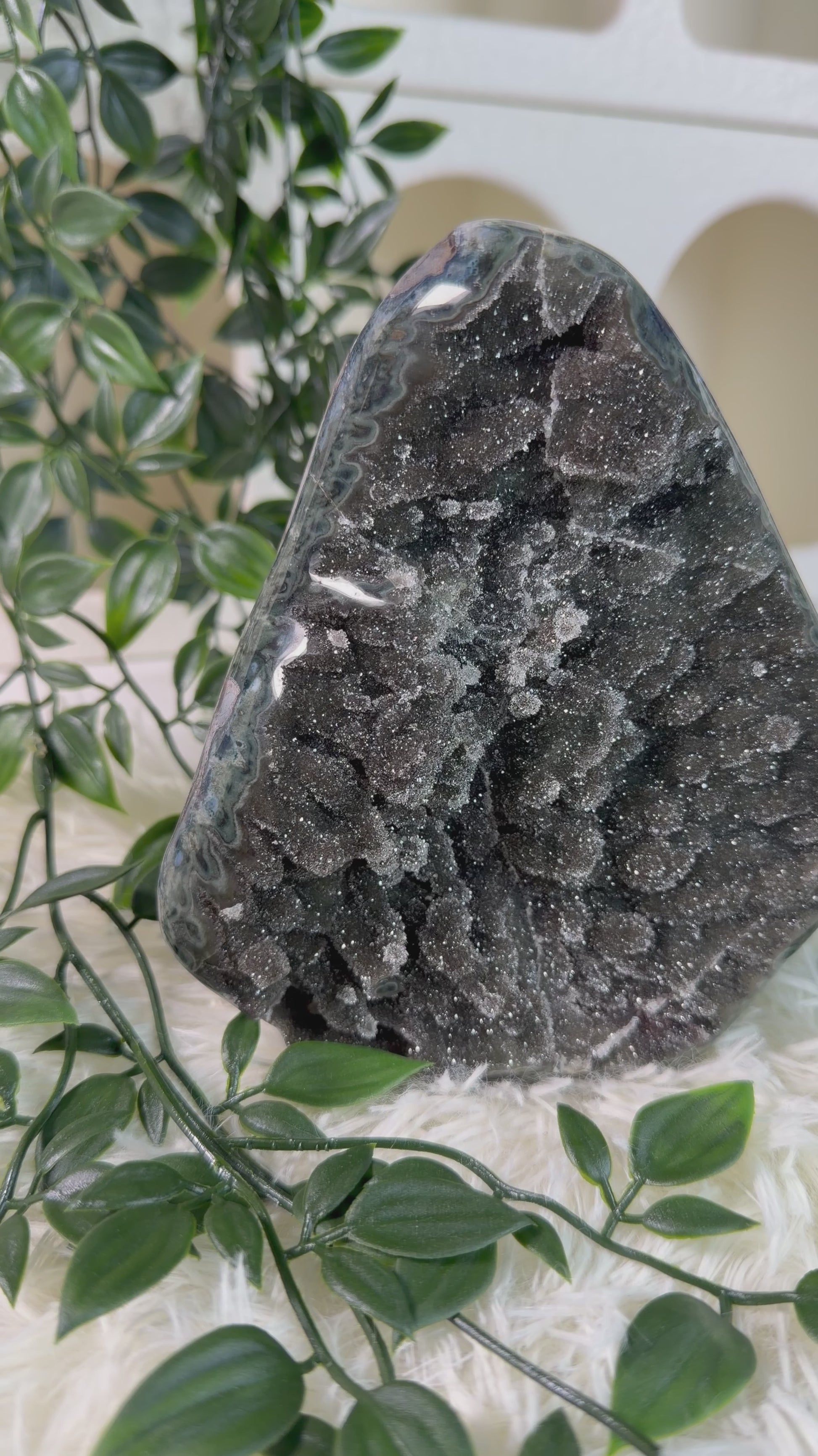 Deze bijzondere groen-grijze Amethist op standvlak heeft een zachte glans en rustige uitstraling. Bekend om haar balans en kalmerende energie, en elk stuk is volledig uniek.