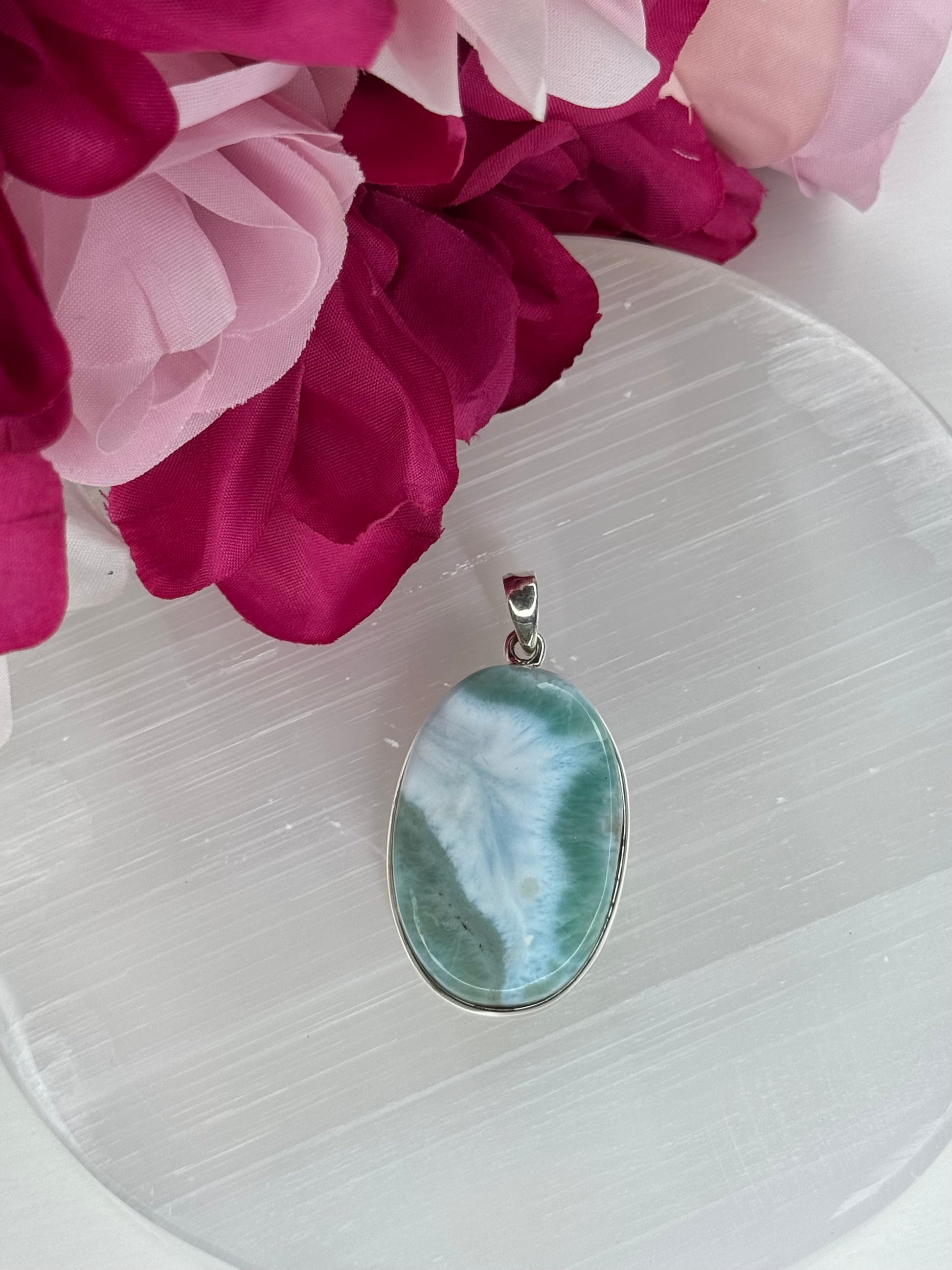 Larimar is een zeldzame, hemelsblauwe steen uit de Dominicaanse Republiek. Hij straalt kalmte uit, helpt emoties te verzachten en brengt innerlijke rust. Perfect voor wie balans en zachtheid zoekt.