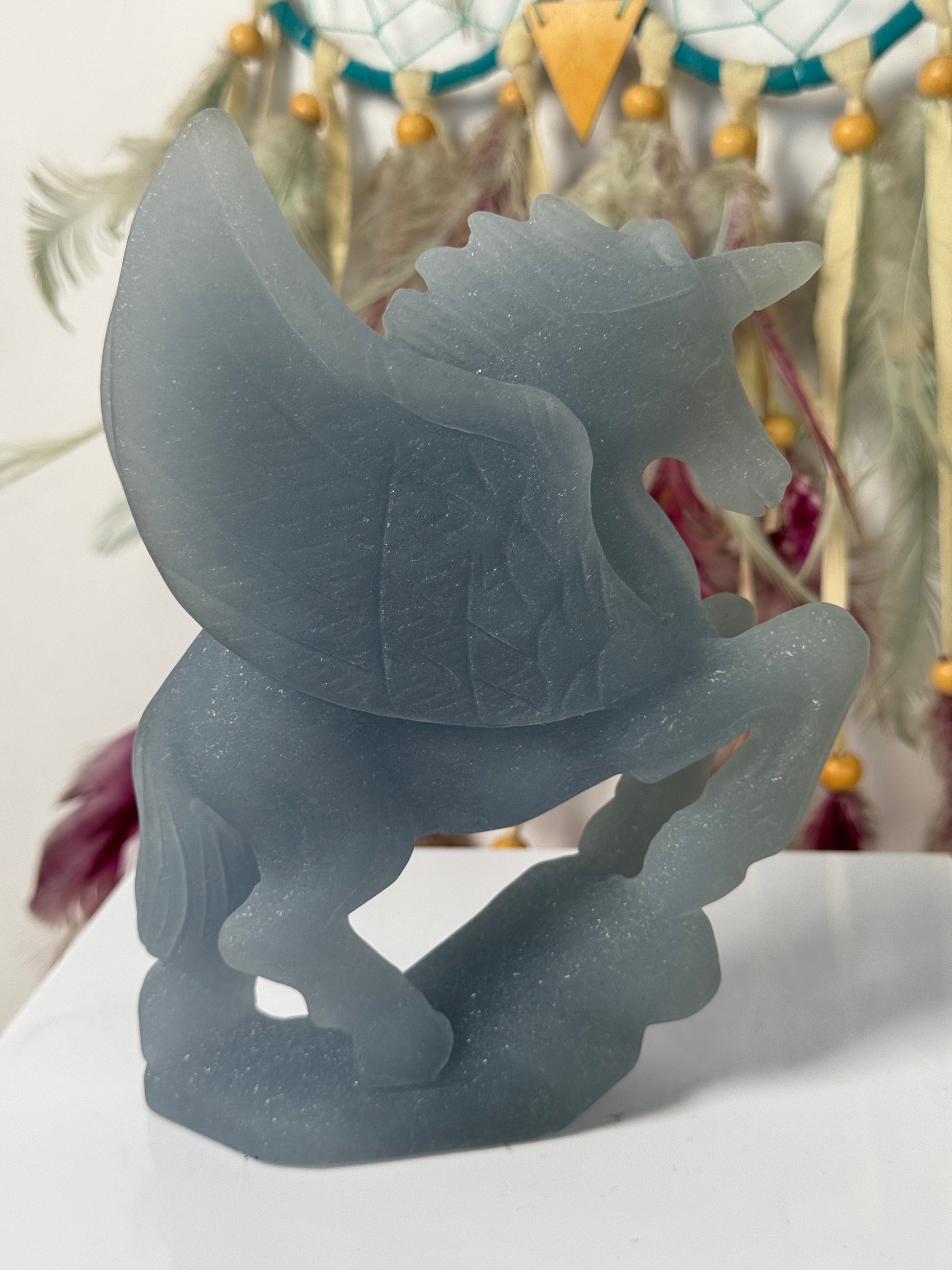 Pegasus staat symbool voor zuiverheid, vrijheid, kracht en creativiteit. Het mythische gevleugelde paard wordt vaak gezien als brenger van inspiratie en spirituele groei.