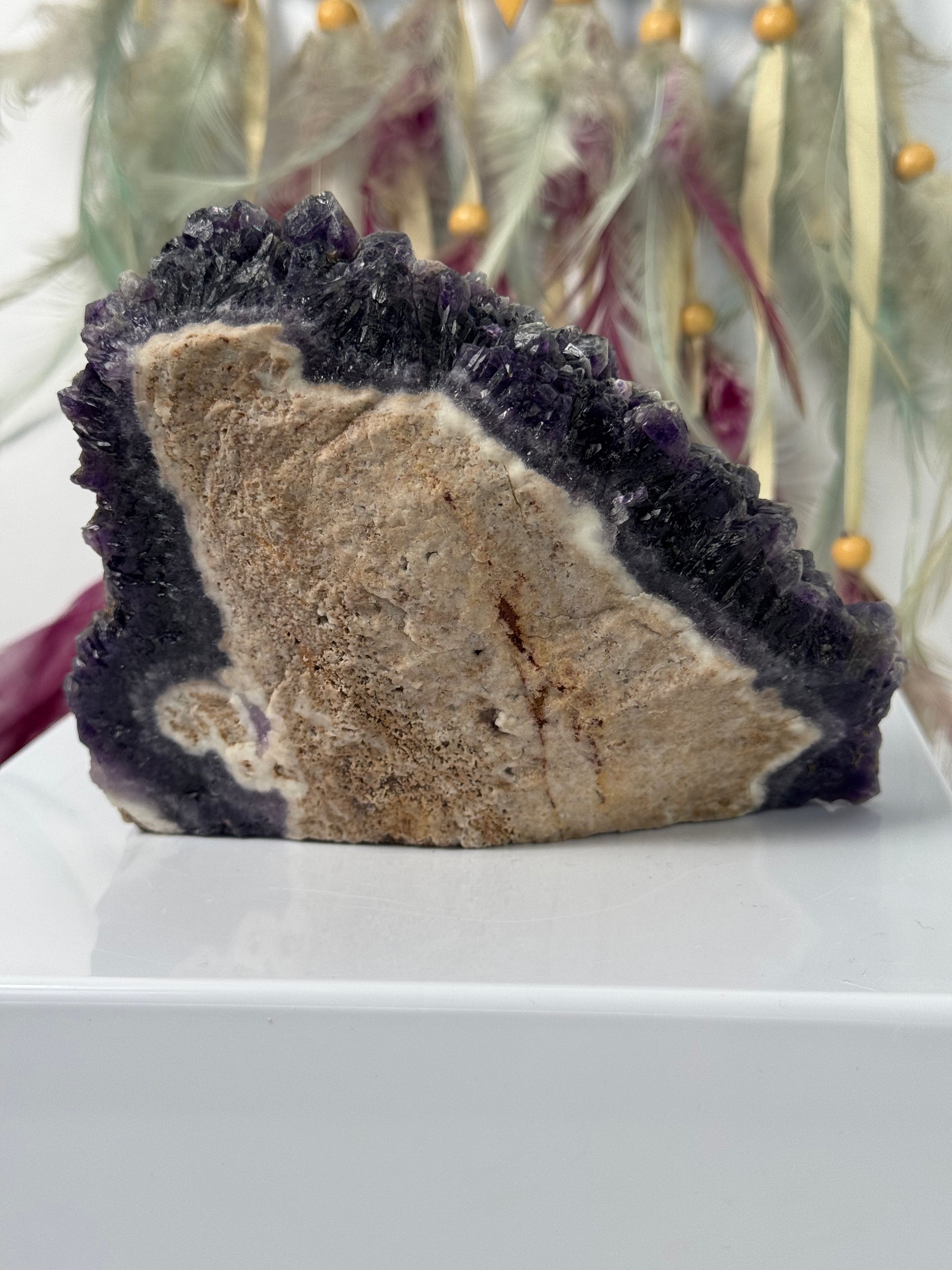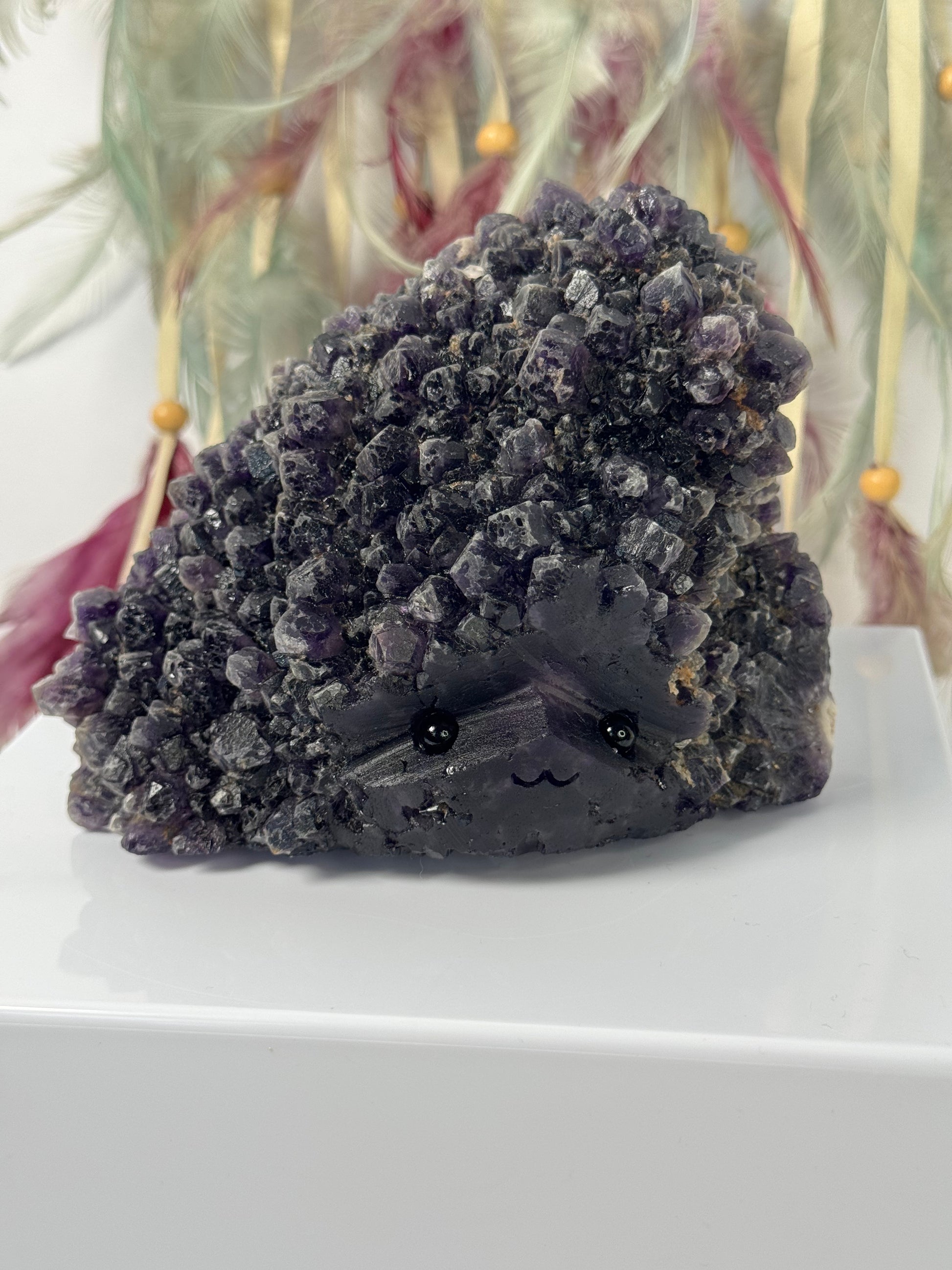 Dit vrolijke Calciet pupke straalt energie en positiviteit uit. Calciet werkt zuiverend en versterkend, en brengt helderheid in huis. De paarse kleur is geverfd, wat het stuk een extra speels en kleurrijk karakter geeft.