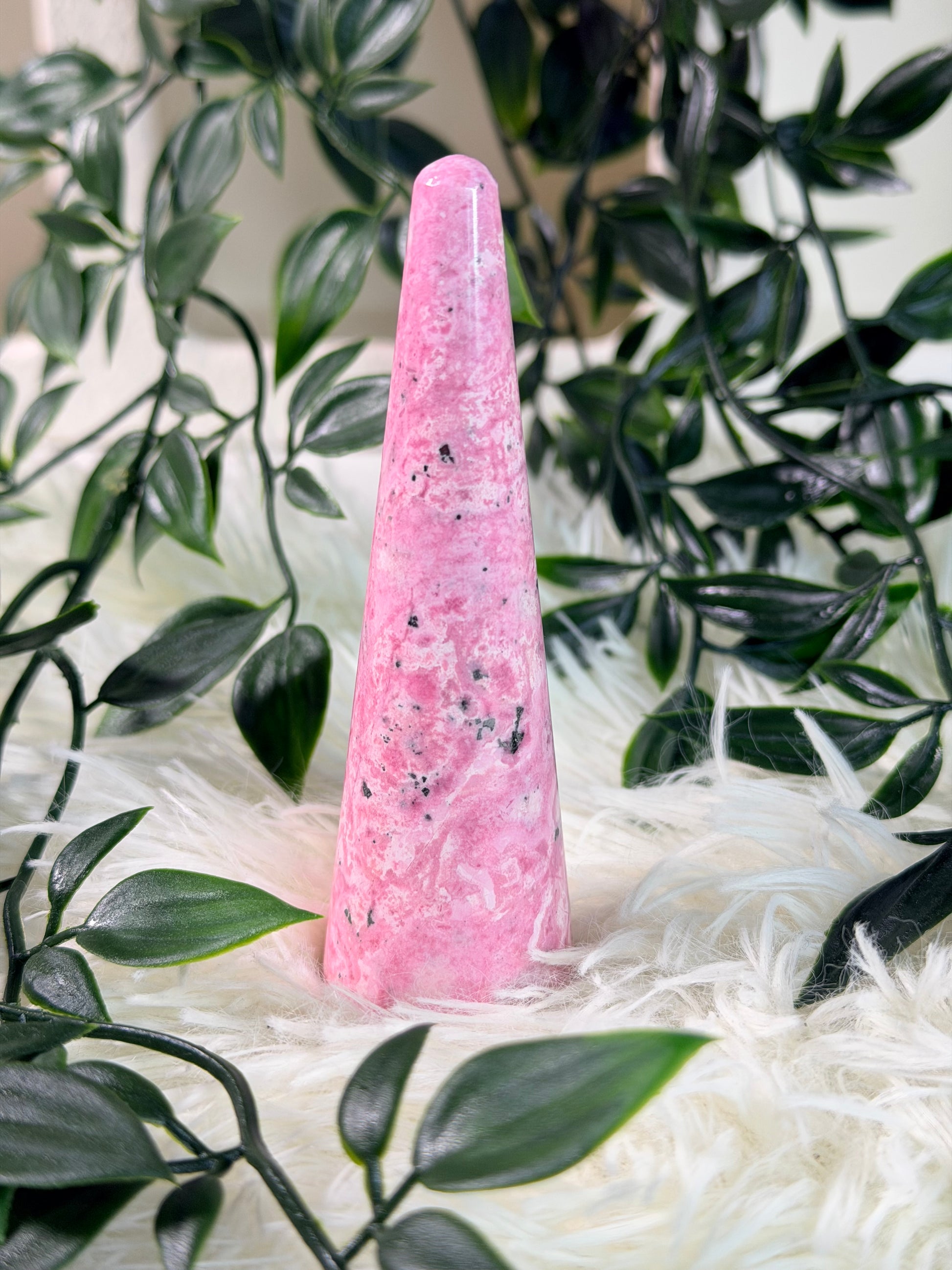 Peruaanse Rhodoniet herken je aan haar warme roze tinten met donkere aders. Deze steen staat bekend om emotionele balans, zelfliefde en veerkracht.