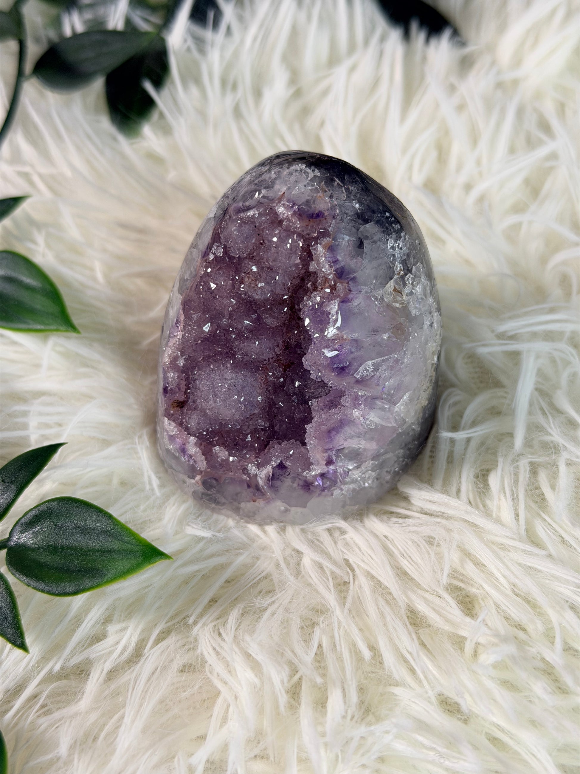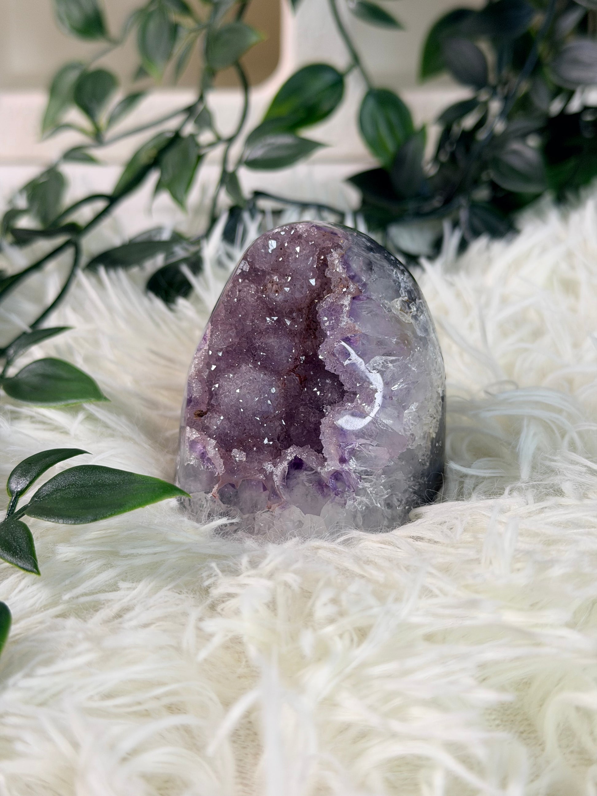 Deze Sugar Druzy Amethist heeft een prachtige paarse kleur met een fijne, suikerkristalachtige glans die schittert bij elk licht.