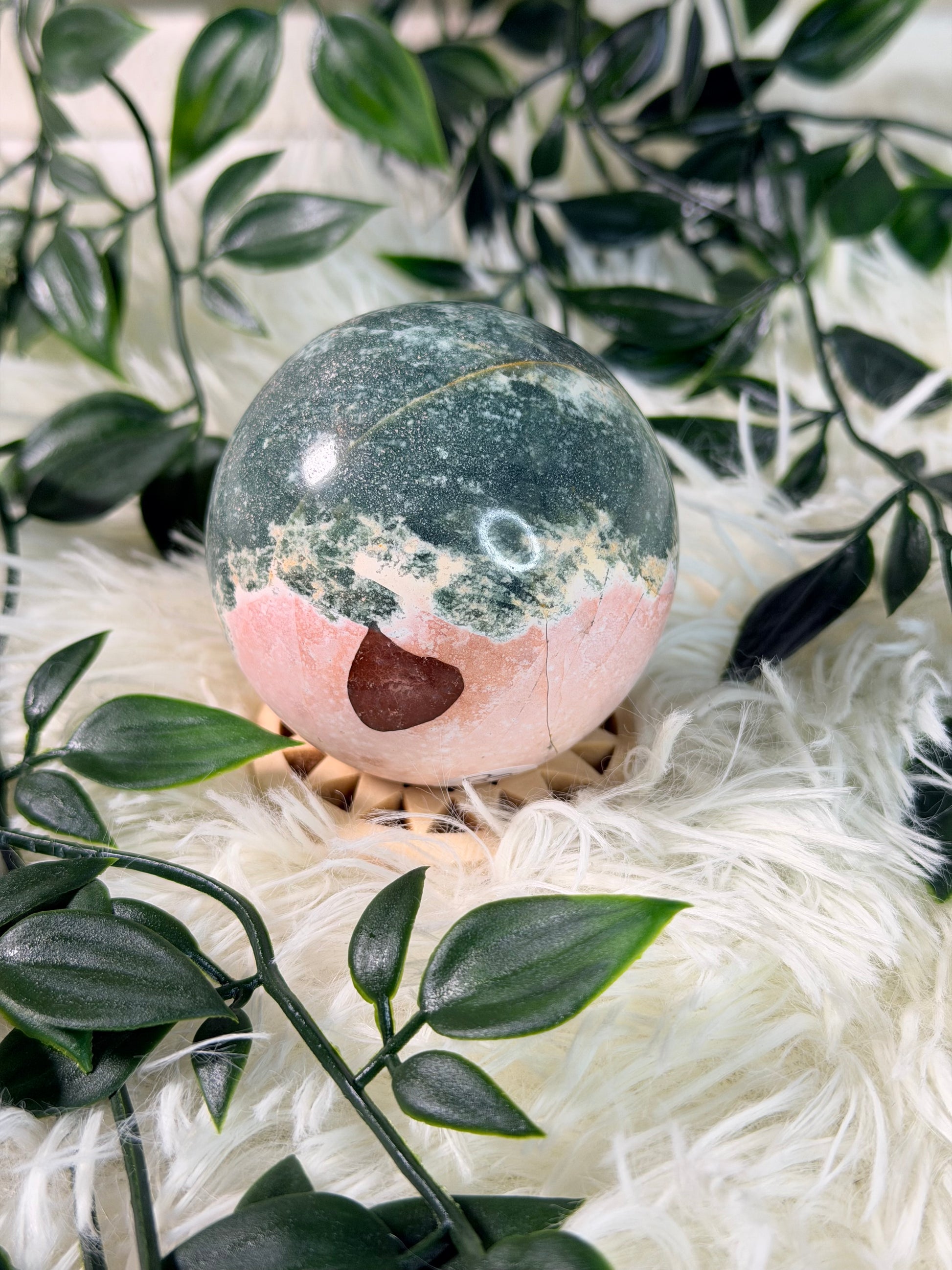 De Unicorn Jaspis bol valt op door haar speelse mix van pastelkleuren en natuurlijke patronen. Deze steen staat bekend om haar positieve en rustgevende energie en brengt een vleugje vrolijkheid in elke ruimte. Elk exemplaar is volledig uniek.