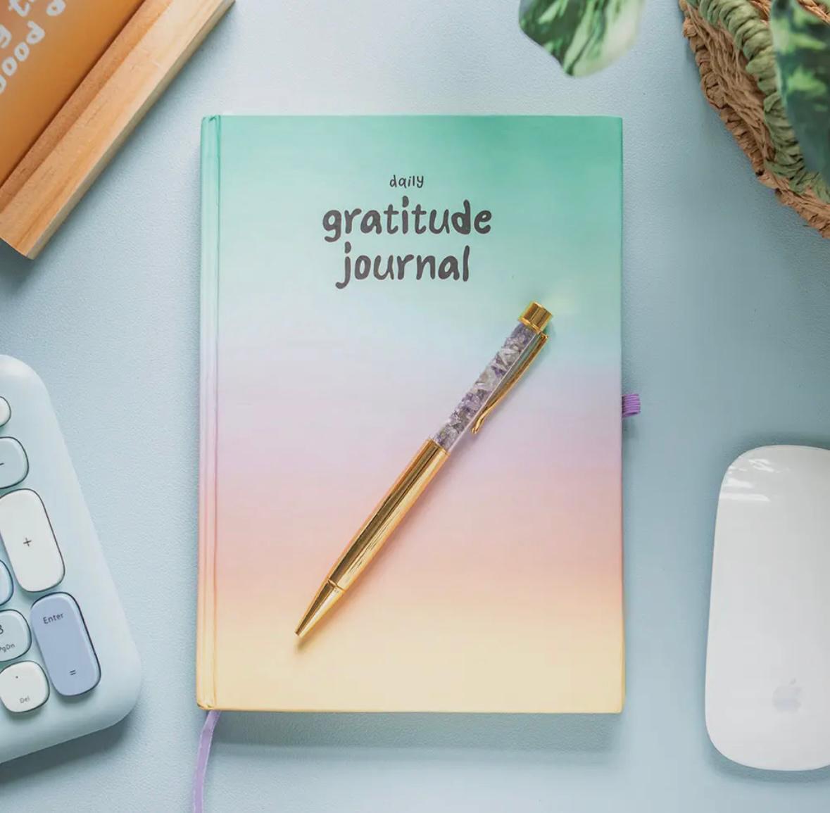 Veelkleurig dankbaarheids dagboek met Amethist pen