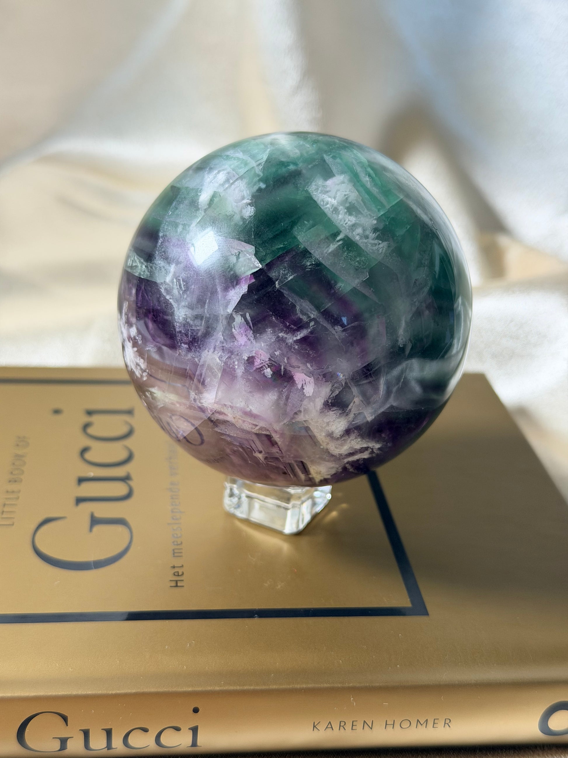 Veren fluoriet is een zeldzame variant van fluoriet met veerachtige insluitsels die ontstaan wanneer minuscule mineralen of gassen in het kristal groeien. Elke steen is uniek en straalt natuurlijke magie uit.