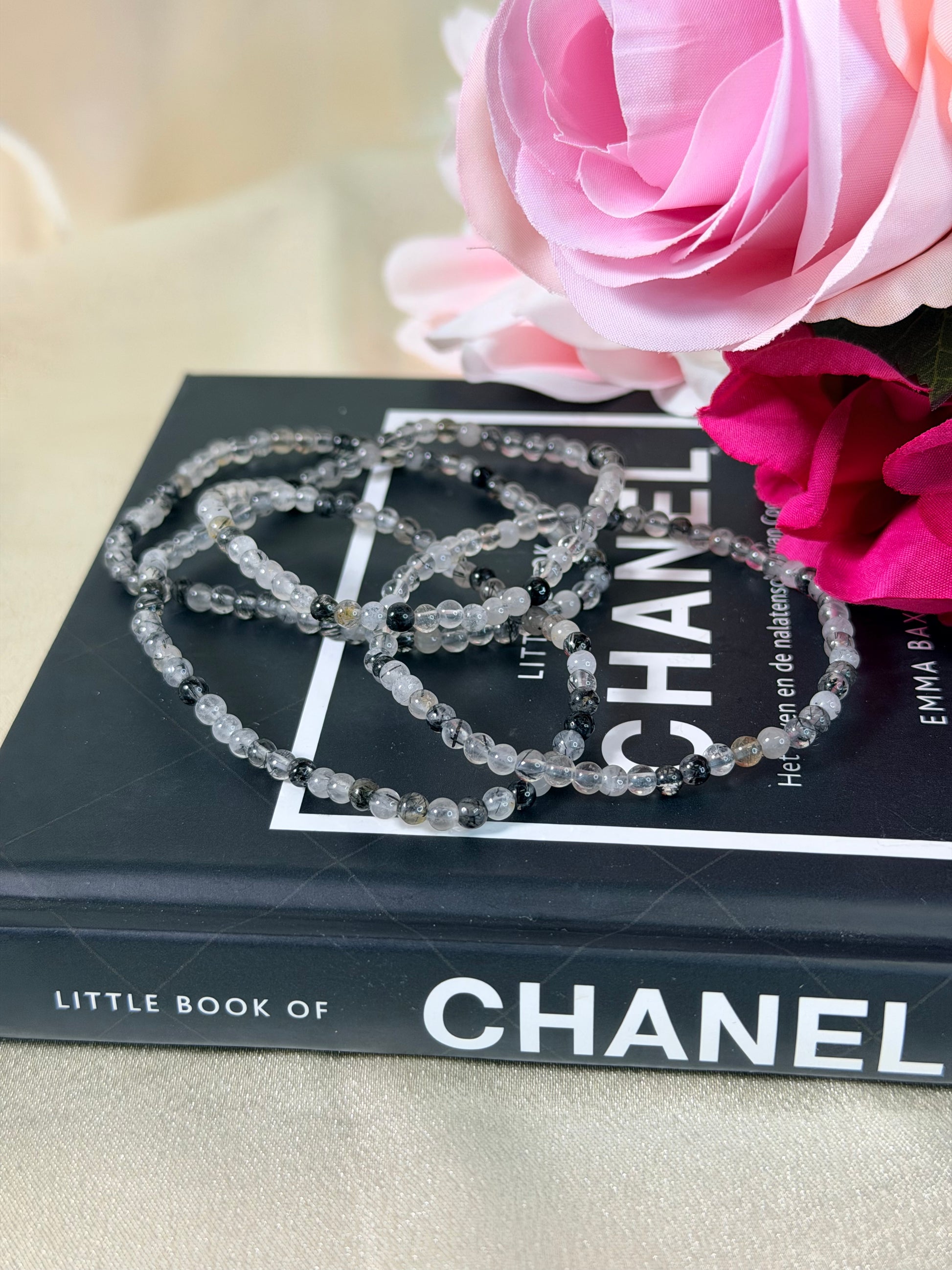 Zwarte Toermalijn in Kwarts combineert de zuiverende kracht van bergkristal met de beschermende energie van zwarte toermalijn. Deze edelsteen helpt om negatieve energie te transformeren, innerlijke balans te herstellen en helderheid van geest te brengen.